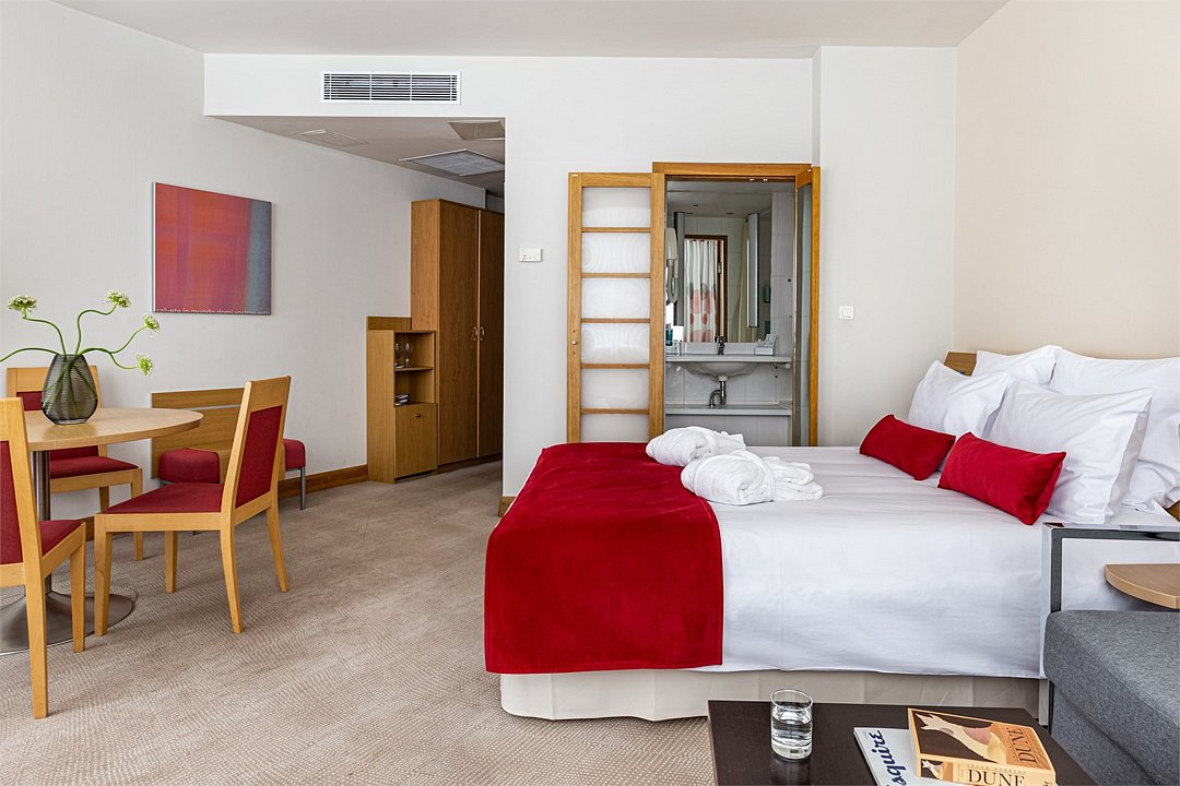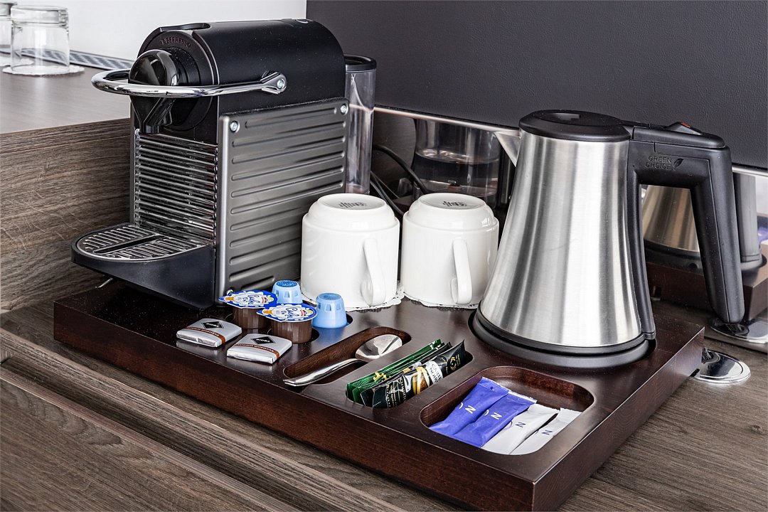 Уютный и функциональный номер расположен в первом здании отеля. Здесь есть всё необходимое для комфортного отдыха и работы. В номере: принадлежности для приготовления чая и кофе, капсульная кофемашина, сейф и расширенный набор косметических средств. В стоимость проживания включён доступ в фитнес-центр и хаммам с 06:00 до 23:00. Для семей предусмотрена возможность размещения ребёнка до 16 лет на кушетке (1950×750 мм).Услуги и удобства