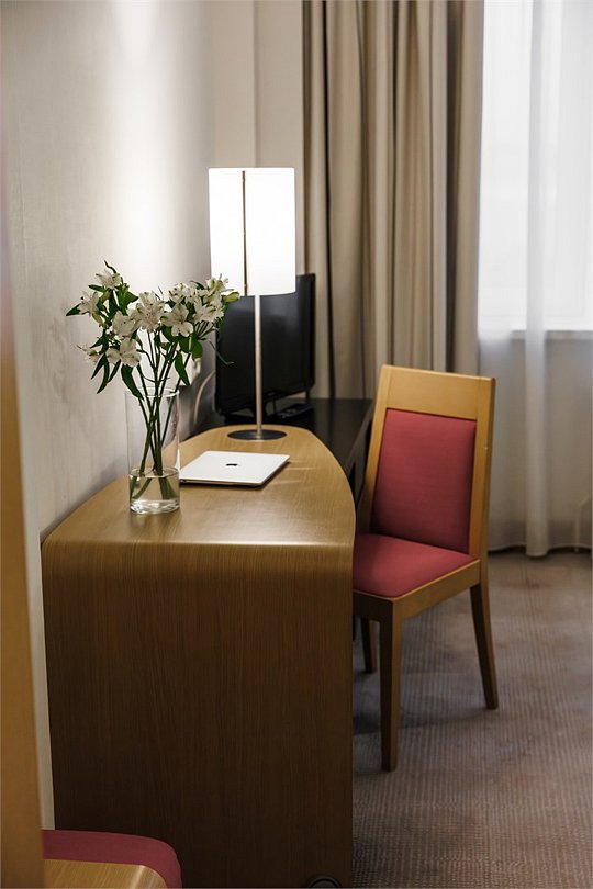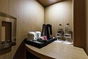 спутниковое телевидение, Wi-Fi, телефон, светильник, настольные лампы, фен, электронные замки, кофемашина, утюг, радио, душевая кабина, халаты, банные полотенца, тапочки, косметические средства, кровать «Queen size», гладильная доска, шкаф для одежды, вешалки, журнальный столик, письменный стол, багажная тумба, зеркало, мини-бар, письменные принадлежности, чайный набор, информационная карта, меню, сейф, чайник, раковина, косметическое зеркало, питьевая вода, ковровое покрытие, отопление, вид на город, кресло, центральное кондиционирование, раздельный санузел, китайский канал, вид во двор, стаканы, стул, туалетные средства, туалет, телевизор со Smart TV, номер для некурящих, фанкойл, экологичный подход, туалетные принадлежности премиум-класса, можно с питомцамиВ гостиничном номере