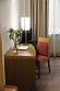 Wi-Fi, телефон, фен, система безопасности, электронные замки, утюг, ванная комната, банные полотенца, тапочки, косметические средства, кровать «Queen size», гладильная доска, шкаф для одежды, письменный стол, багажная тумба, зеркало, чайный набор, обслуживание номеров, информационная карта, меню, сейф, чайник, раковина, ковровое покрытие, душ, кресло, раздельный санузел, вид во двор, стул, туалетные средства, туалет, телевизор с плоским экраном, мини-холодильник, фанкойл, оснащение для гостей с ограниченными возможностями, вешалки-плечики, бутилированная вода, шапочка для душа, прачечная (за дополнительную плату), можно с питомцамиВ гостиничном номере