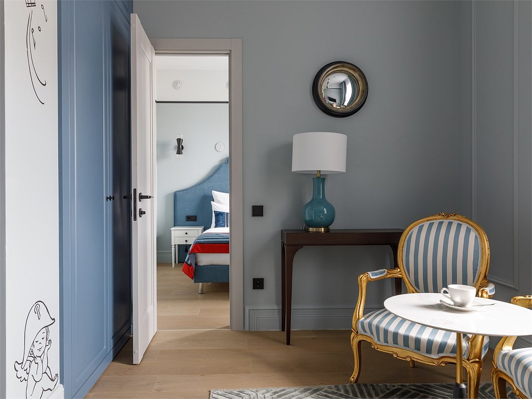 спутниковое телевидение, Wi-Fi, телефон, холодильник, кондиционер, светильник, фен, электронные замки, санузел, халаты, две односпальные или большая двуспальная кровать, стулья, шкаф для одежды, вешалки, письменный стол, зеркало, эксклюзивная мебель, звуконепроницаемые стены и окна, сейф, унитаз, раковина, душ, вид на город, кулер на этаже, вид на реку, две спальни, паркет, туалетные средства, вид на парк, мини-холодильник, телевизор со Smart TV, электронный консьерж 24/7, антикварная мебель, чайная станция, мини-бар (платно), можно с питомцамиВ номере