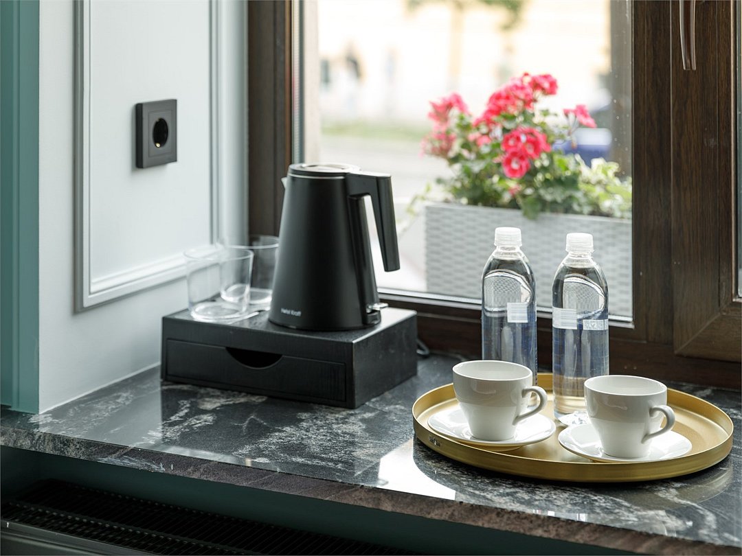 спутниковое телевидение, Wi-Fi, телефон, холодильник, кондиционер, светильник, фен, электронные замки, санузел, халаты, две односпальные или большая двуспальная кровать, стулья, шкаф для одежды, вешалки, письменный стол, зеркало, эксклюзивная мебель, звуконепроницаемые стены и окна, сейф, унитаз, раковина, душ, вид на город, кулер на этаже, вид на реку, две спальни, паркет, туалетные средства, вид на парк, диван-кровать, мини-холодильник, гостиничная парфюмерия, телевизор со Smart TV, электронный консьерж 24/7, антикварная мебель, чайная станция, мини-бар (платно), можно с питомцамиВ номере
