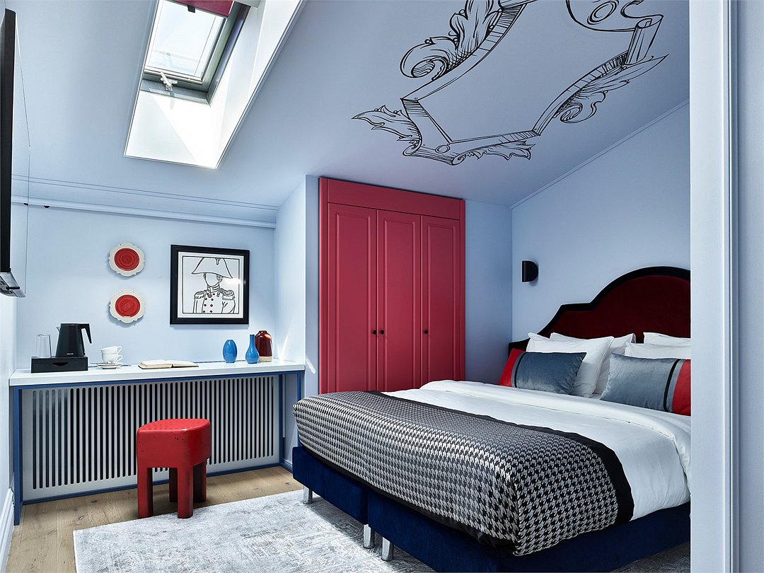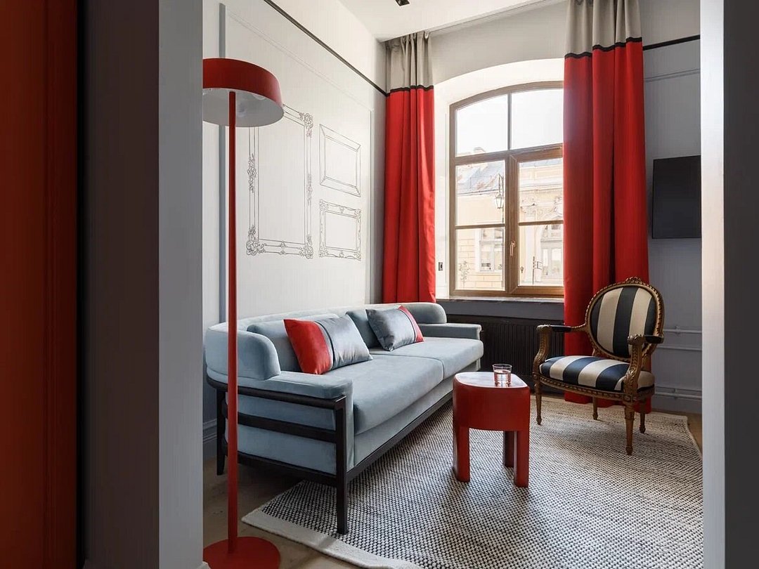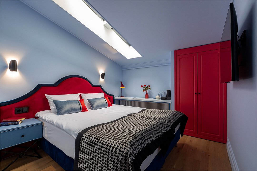 Двухкомнатный мансардный номер для творческих людей, стремящихся к уютной и оригинальной обстановке. Креативное и элегантное пространство для незабываемого отдыха. Номер оснащен кондиционером, сейфом, мини-холодильником, телефоном и телевизором с плоским экраном, чайной станцией. Все номера отеля имеют идеальную звукоизоляцию.Услуги и удобства