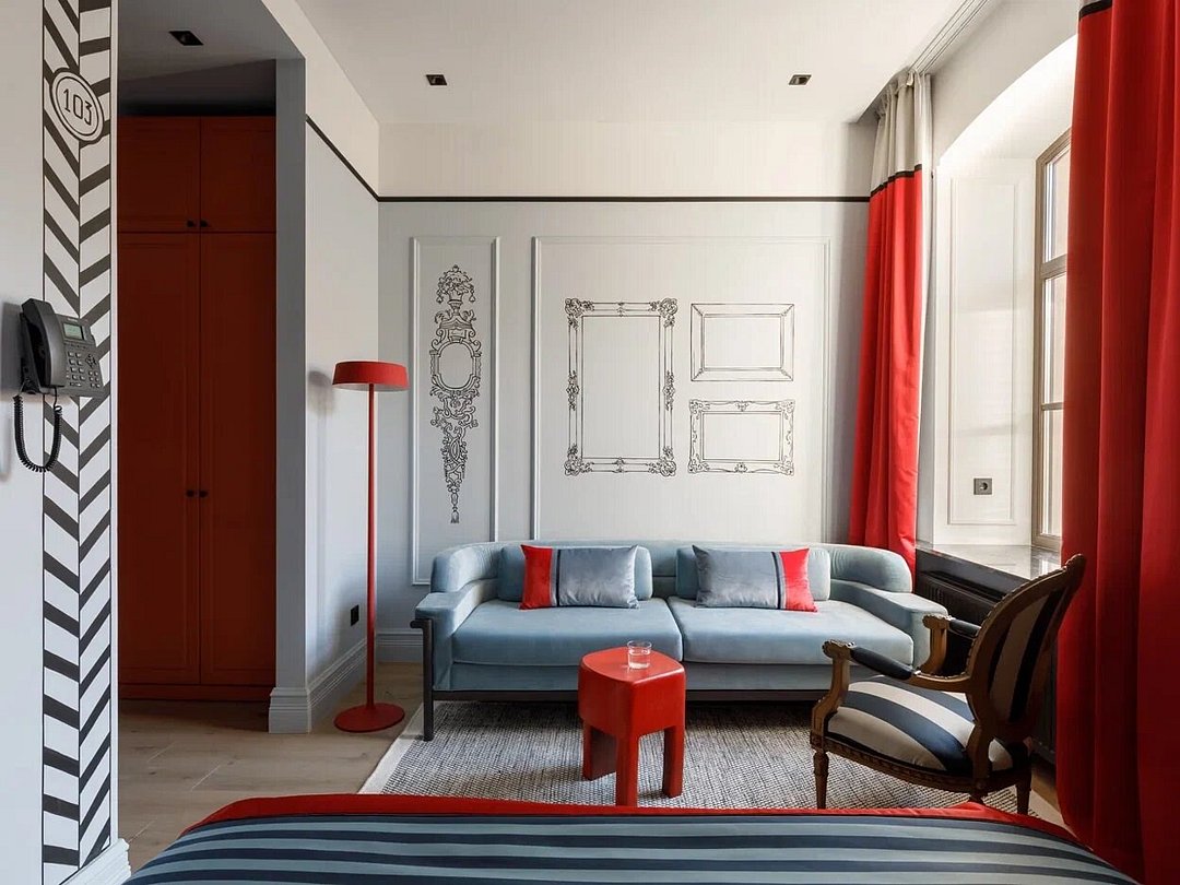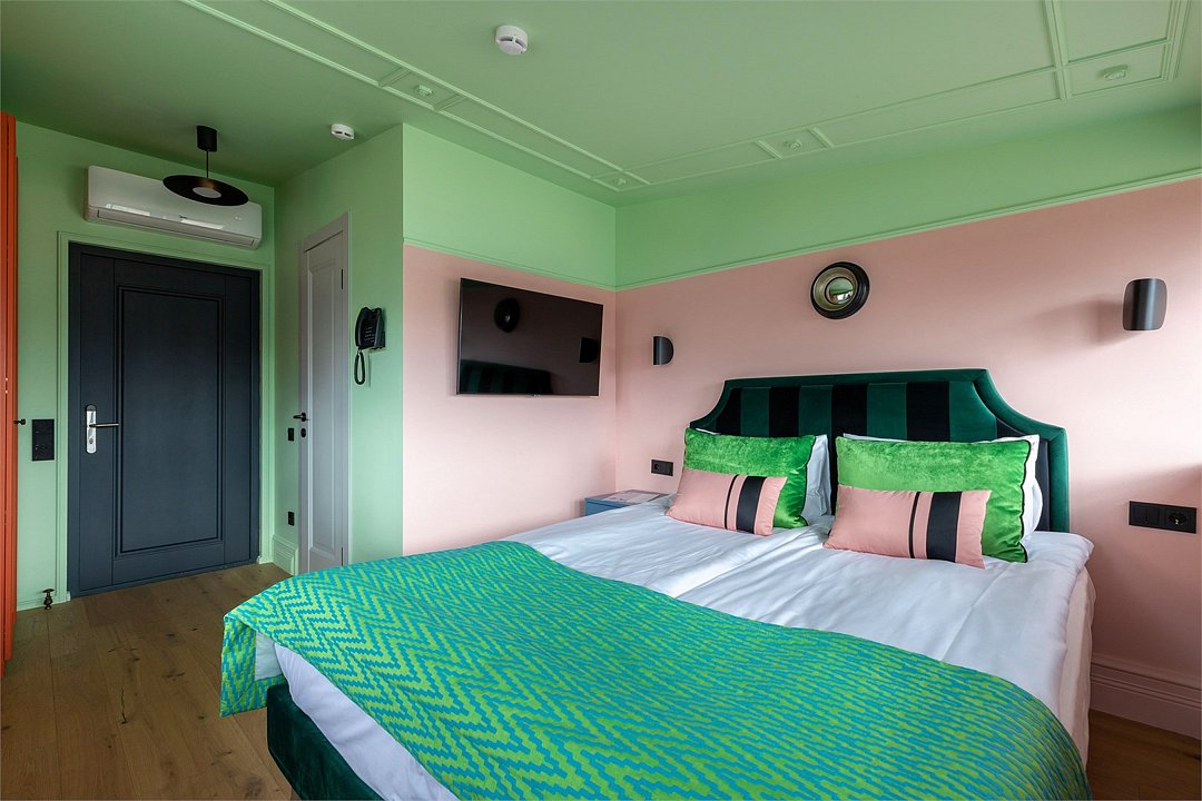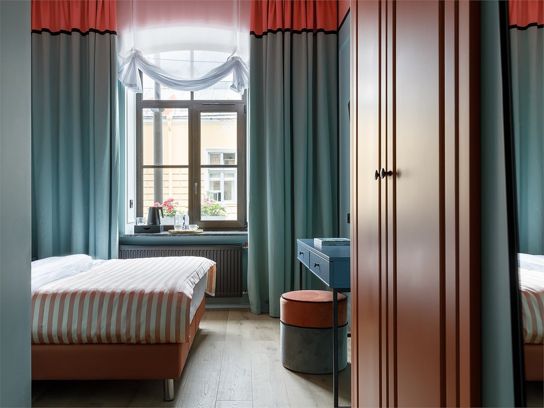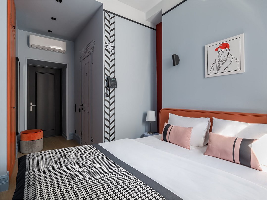 Светлые номера на пятом этаже отеля открывают гостям панорамный вид на крыши города. Фотогеничный номер с тёплой домашней атмосферой — идеальное место, чтобы зарядиться энергией перед долгой прогулкой и расслабиться вечером. Номер оснащен кондиционером, сейфом, мини-холодильником, телефоном, телевизором с плоским экраном, чайной станцией. Все номера отеля имеют идеальную звукоизоляцию.Услуги и удобства