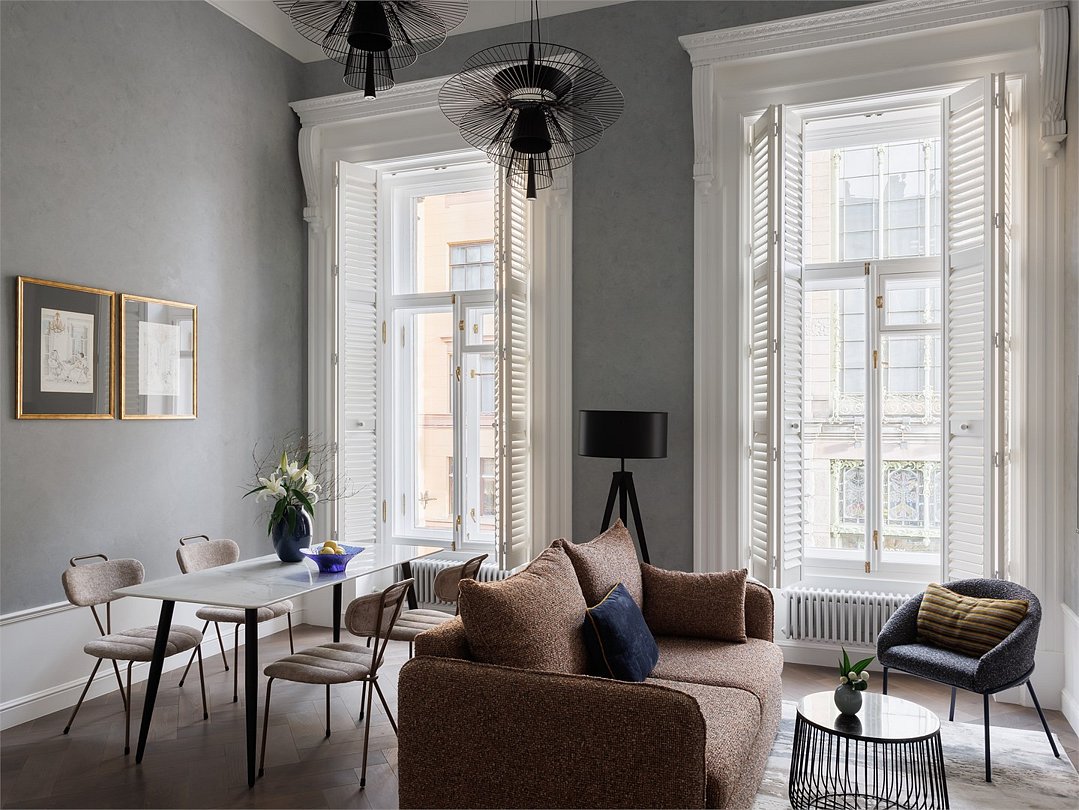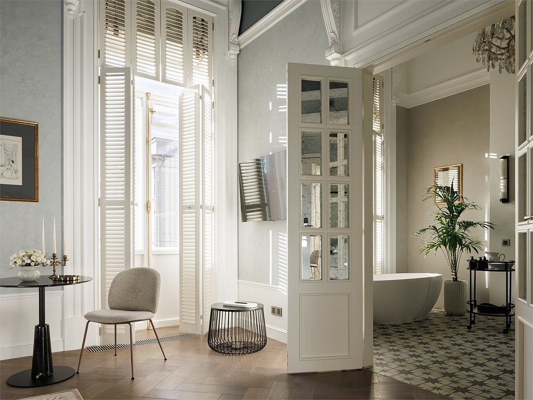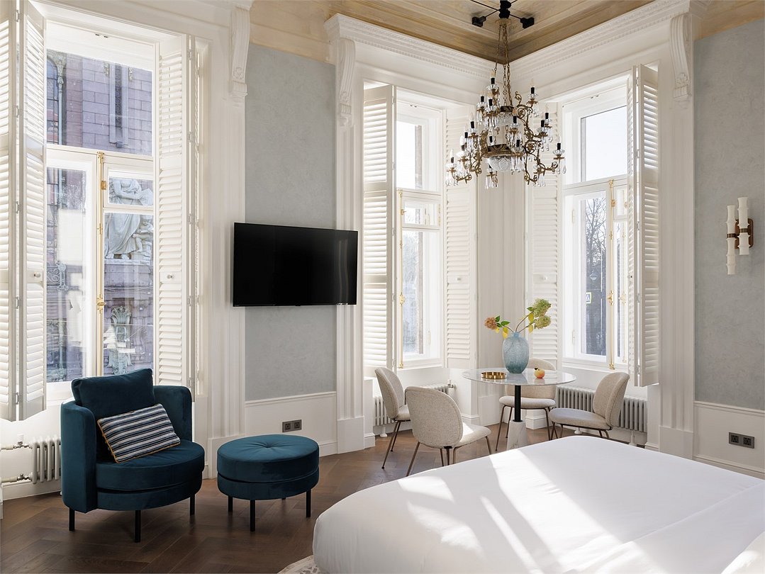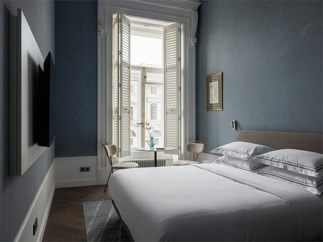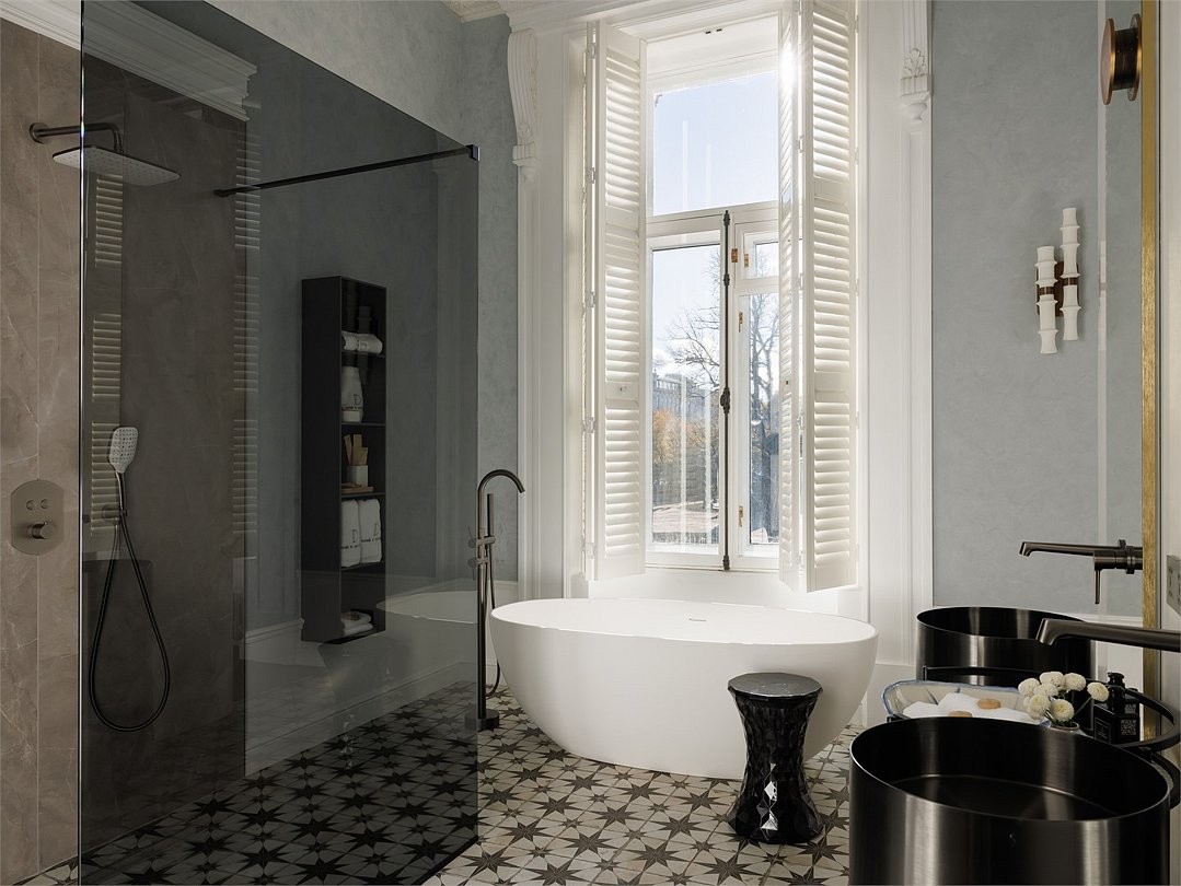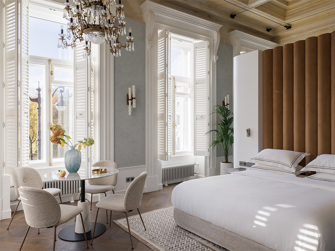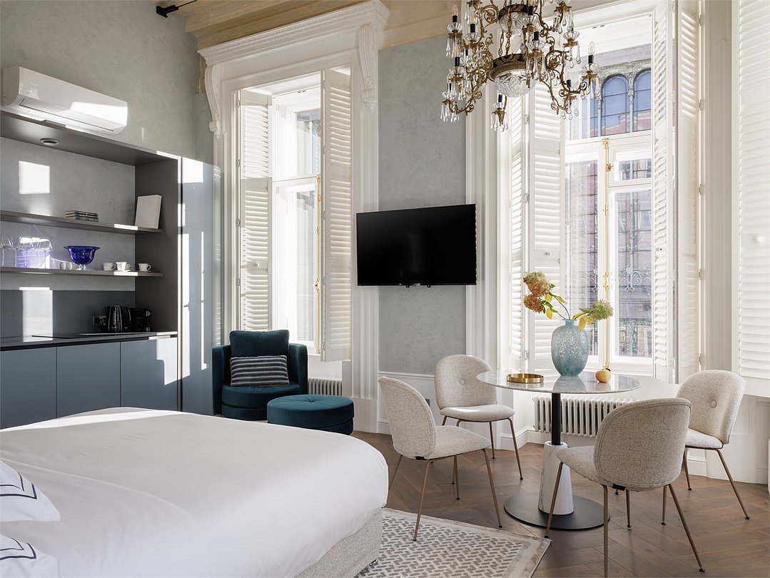 Просторный видовой люкс, который сочетает в себе дух исторического шарма и современного комфорта. Особенности номера: система «умный дом» видовая ванна премиальные текстиль и ортопедический матрас ️ оригинальные светильники в форме китайских зонтиков, подобные тем, что были раньше в библиотеке напротив отеля большие отреставрированные окна историческая лепнина потолки 5 метровУслуги и удобства