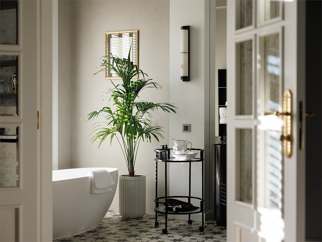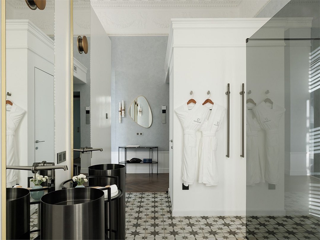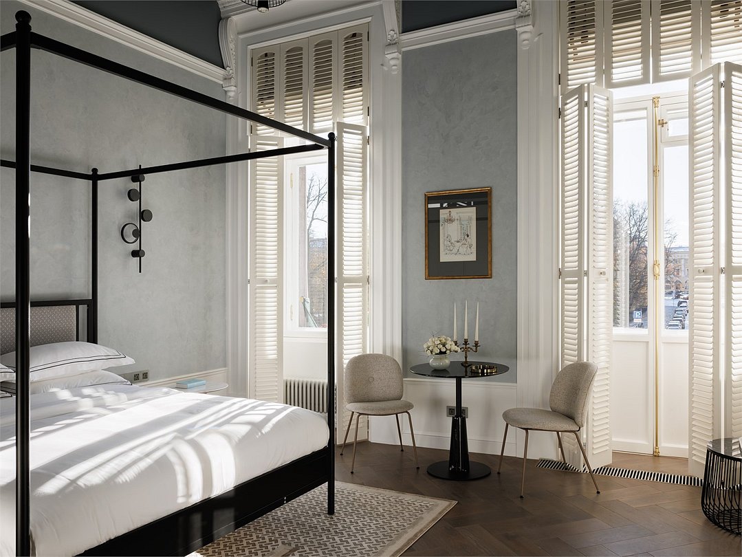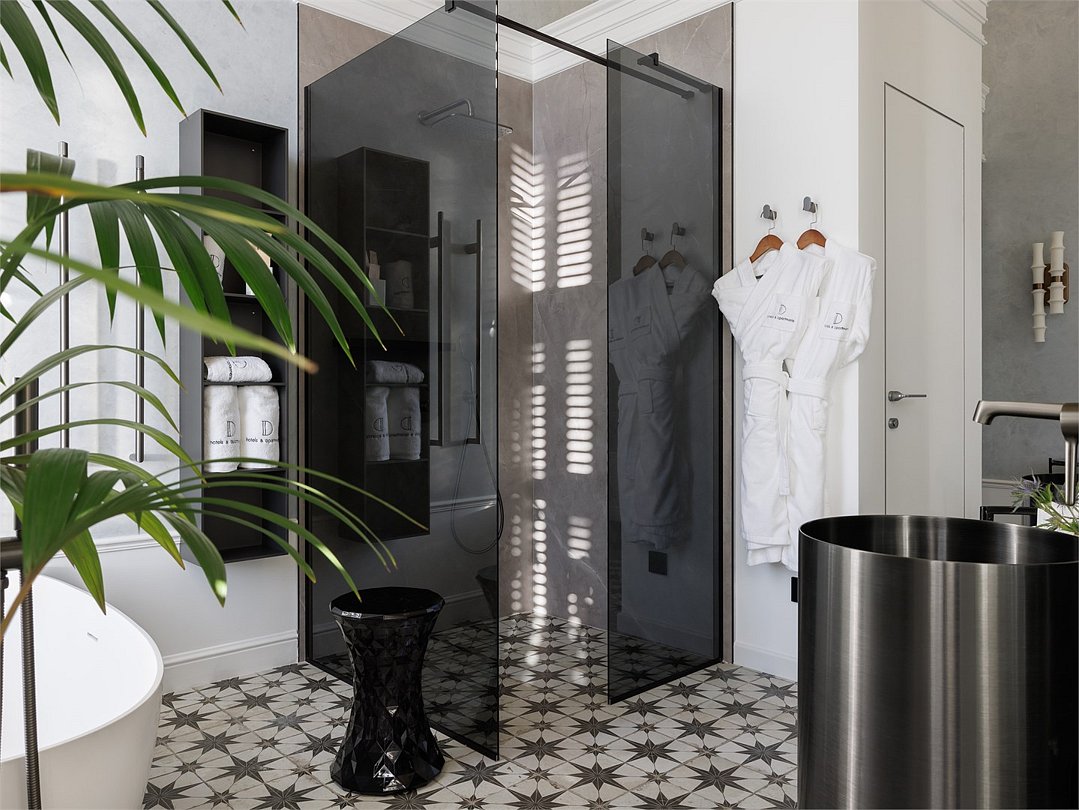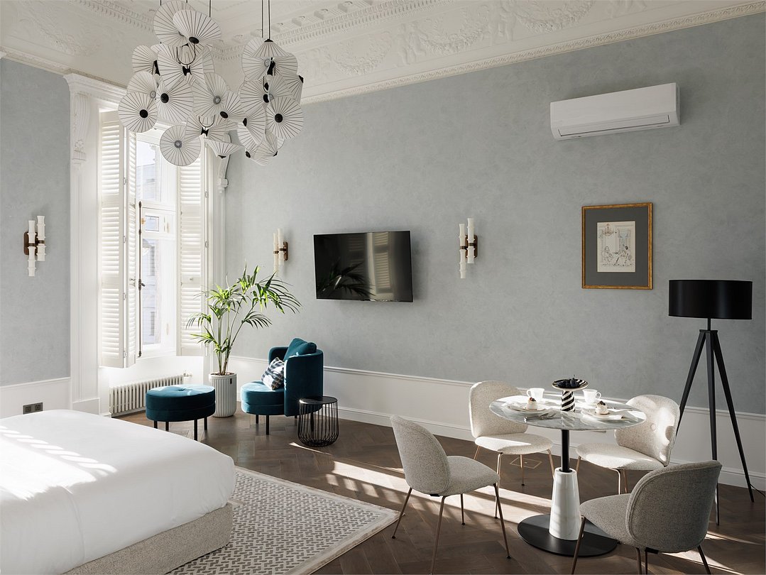 Wi-Fi, кондиционер, фен, электронные замки, халаты, тапочки, косметические средства, кровать «Queen size», тумбы, эксклюзивная мебель, чайный набор, обслуживание номеров, сейф, чайник, душ, вид во двор, внутренний телефон, телевизор со Smart TV, система умный дом, услуги прачечной (платно), туалетные принадлежности премиум-класса, бутилированная вода, затемняющая штора, косметические принадлежности премиум-класса, сенсорные панели для управление освещениемВ номере