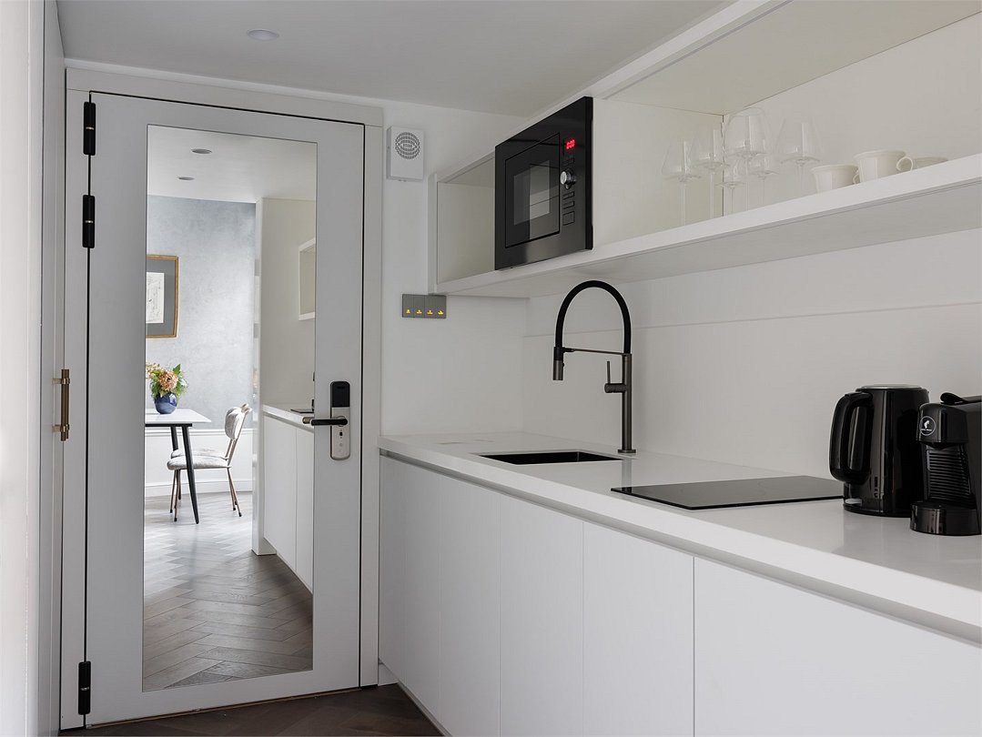 Wi-Fi, система климат-контроля, светильник, фен, плита для приготовления пищи, кофемашина, микроволновая печь, санузел, халаты, банные полотенца, тапочки, кровать «Queen size», стулья, шкаф для одежды, вешалки, набор посуды, сейф, посудомоечная машина, мягкая мебель, обеденная зона, гостиная зона, отопление, душ, вид на город, высокие потолки, внутренний телефон, мини-холодильник, кухонный уголок, телевизор со Smart TV, номер для некурящих, система умный дом, чайная станция, услуги прачечной (платно), туалетные принадлежности премиум-класса, бутилированная вода, зеркало в полный рост, косметические принадлежности премиум-класса, не раскладной диванВ номере