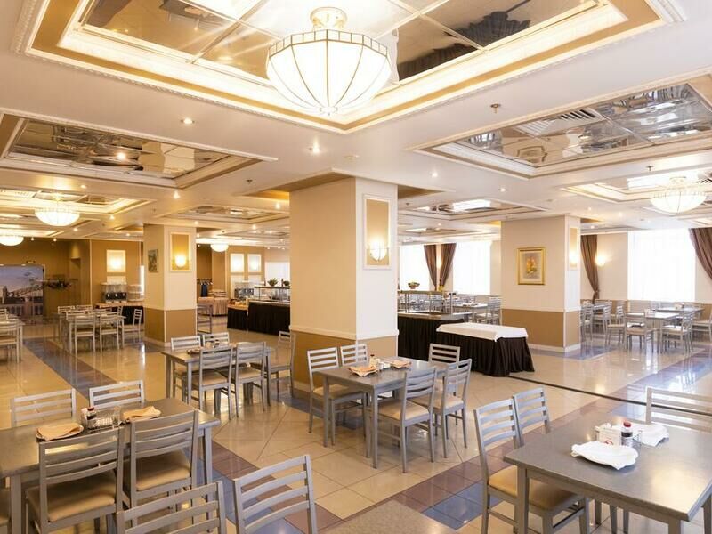 Здесь работает 4 разных ресторана, меню в которых не повторяется. Также посидеть со вкусом можно в круглосуточном лобби-баре и летнем панорамном кафе. Барная карта имеет в своем ассортименте изысканные вида и несколько видов кофе. В гостинице работает собственная пекарня и кондитерская. В теплое время года открывается уютная веранда, которая выходит на разводной мост.