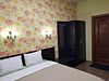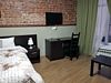 Двухместный номер с двуспальной кроватью, столом и шкафом.
