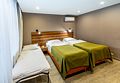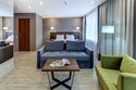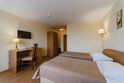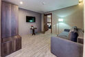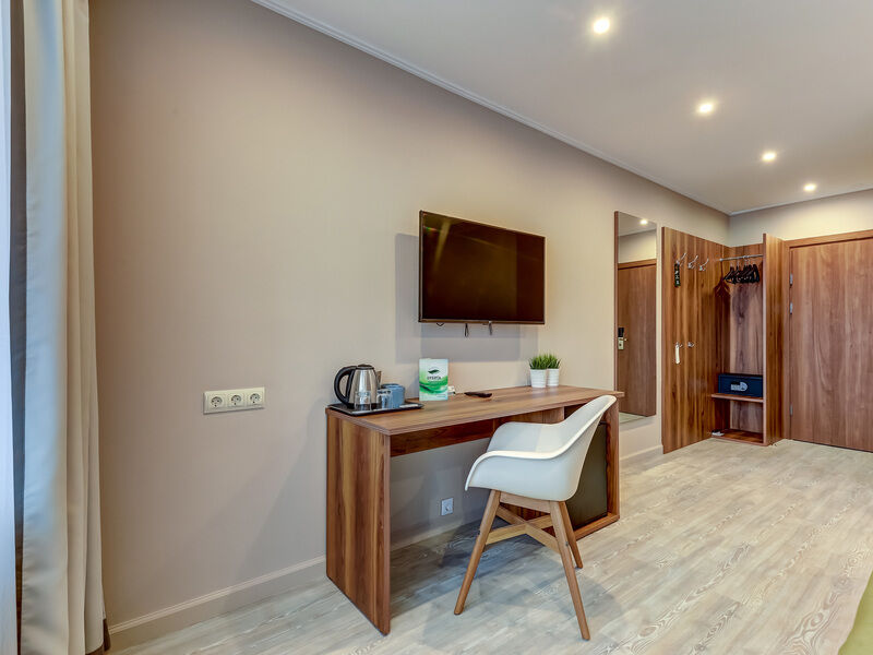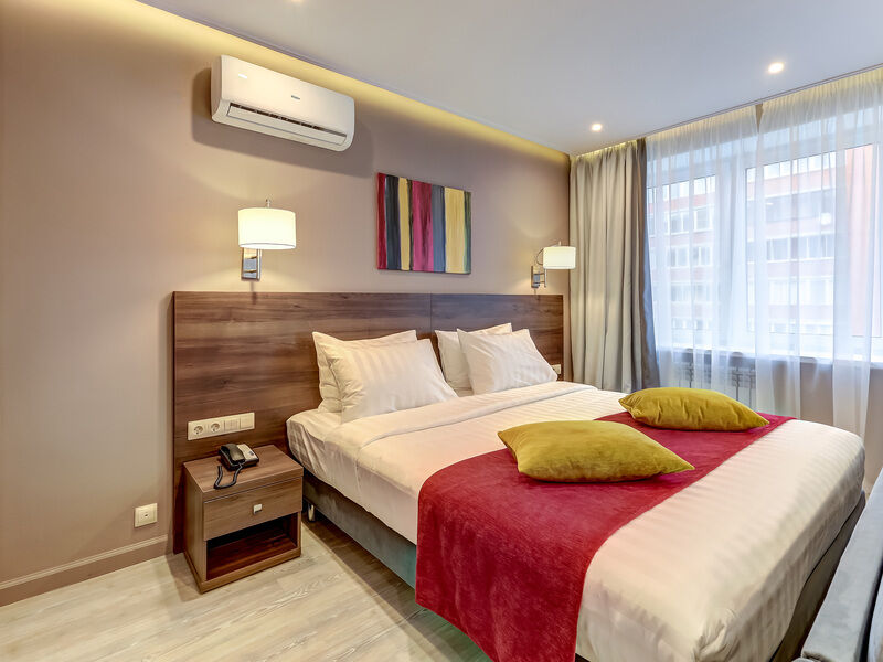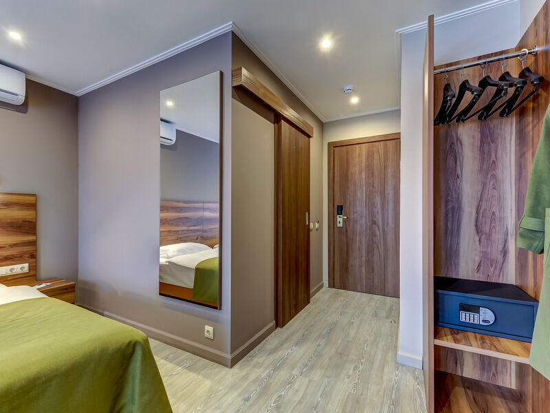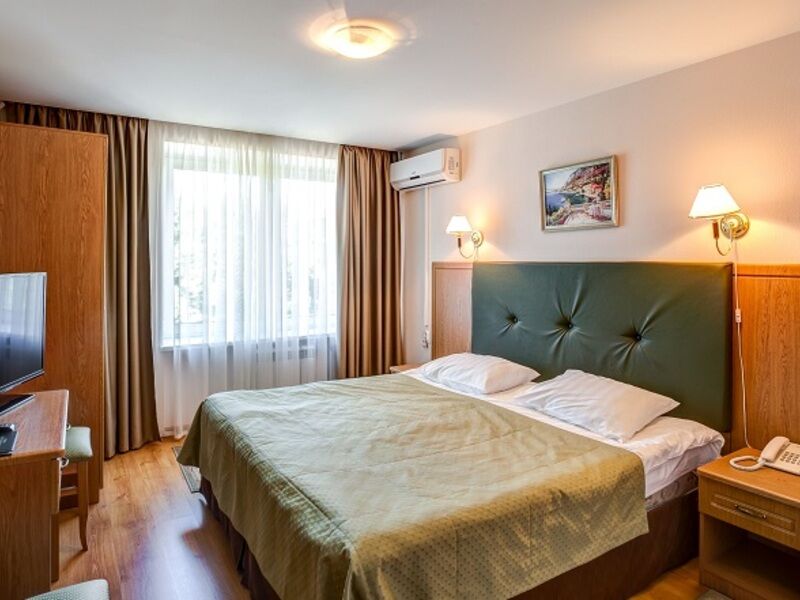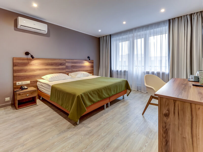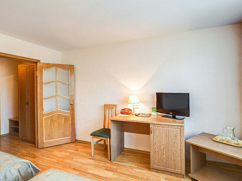 Всего в комплексе 256 номеров. Экономы, рассчитанные на 2-4 человека, стандарты на 1-2 жильцов, а также двухместные полулюксы и люксы. Комнаты обставлены удобной мебелью, имеется бытовая техника: телевизор, кондиционер, телефон, фен выдают по запросы. На полочках стоят чайные наборы, а в душевой туалетные принадлежности. Постояльцам бесплатно выдают пароль от гостиничного Wi-Fi.