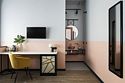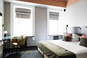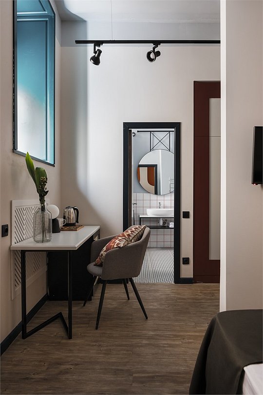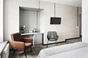 телевизор, кабельное телевидение, Wi-Fi, кондиционер, светильник, настольные лампы, фен, электронные замки, утюг, обогреватель, ванная комната, душевая кабина, санузел, теплый пол, банные принадлежности, халаты, банные полотенца, тапочки, косметические средства, кровать «King size», шкаф для одежды, вешалки, зеркало, мини-бар, чайный набор, сейф, чайник, унитаз, раковина, питьевая вода, отопление, кулер на этаже, вид во двор, ламинат, высокие потолки, стаканы, стул, стол, туалетные средства, туалет, мини-холодильник, москитная сетка, гостиничная парфюмерия, теплые полы, номер для некурящих, рабочий столВ номере