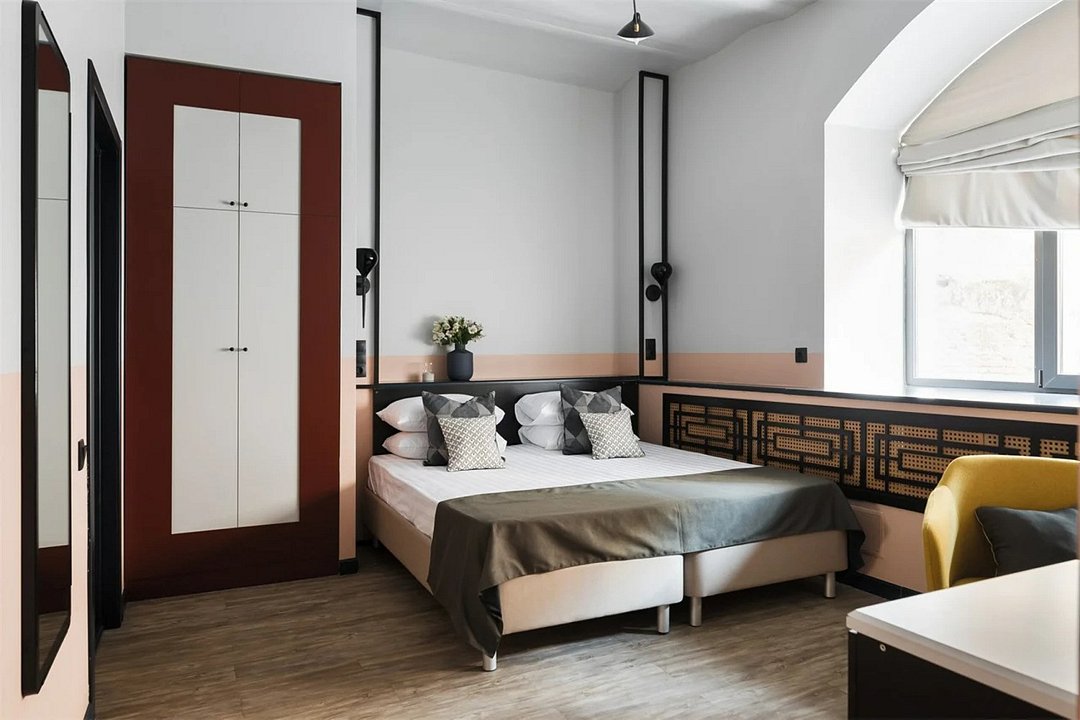 телевизор, кабельное телевидение, Wi-Fi, кондиционер, светильник, настольные лампы, фен, электронные замки, плита для приготовления пищи, микроволновая печь, утюг, обогреватель, ванная комната, душевая кабина, санузел, теплый пол, банные принадлежности, халаты, тапочки, гигиенические средства, косметические средства, две односпальные или большая двуспальная кровать, стулья, шкаф для одежды, гардеробная, вешалки, письменный стол, обеденный стол, зеркало, мини-бар, чайный набор, набор посуды, сейф, чайник, унитаз, раковина, питьевая вода, ковровое покрытие, отопление, душ, кулер на этаже, вид во двор, ламинат, кухонная посуда, стаканы, кухонная утварь, столовые приборы, стул, стол, тумба, туалет, телевизор с плоским экраном, мини-холодильник, мини-кухня, кухонный уголок, москитная сетка, гостиничная парфюмерия, теплые полы, рабочий столВ номере