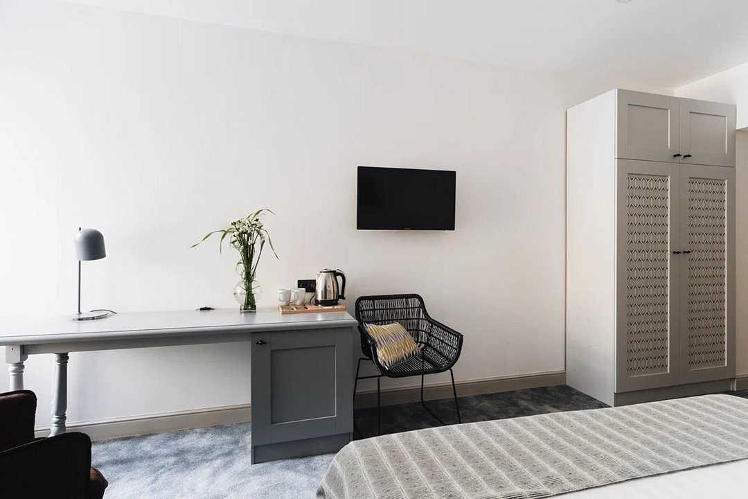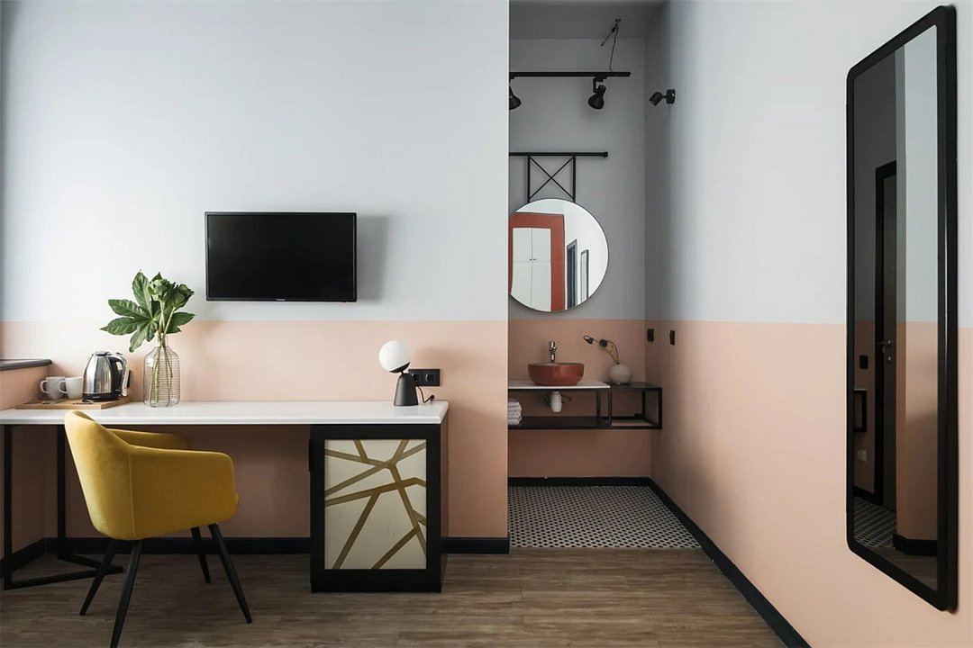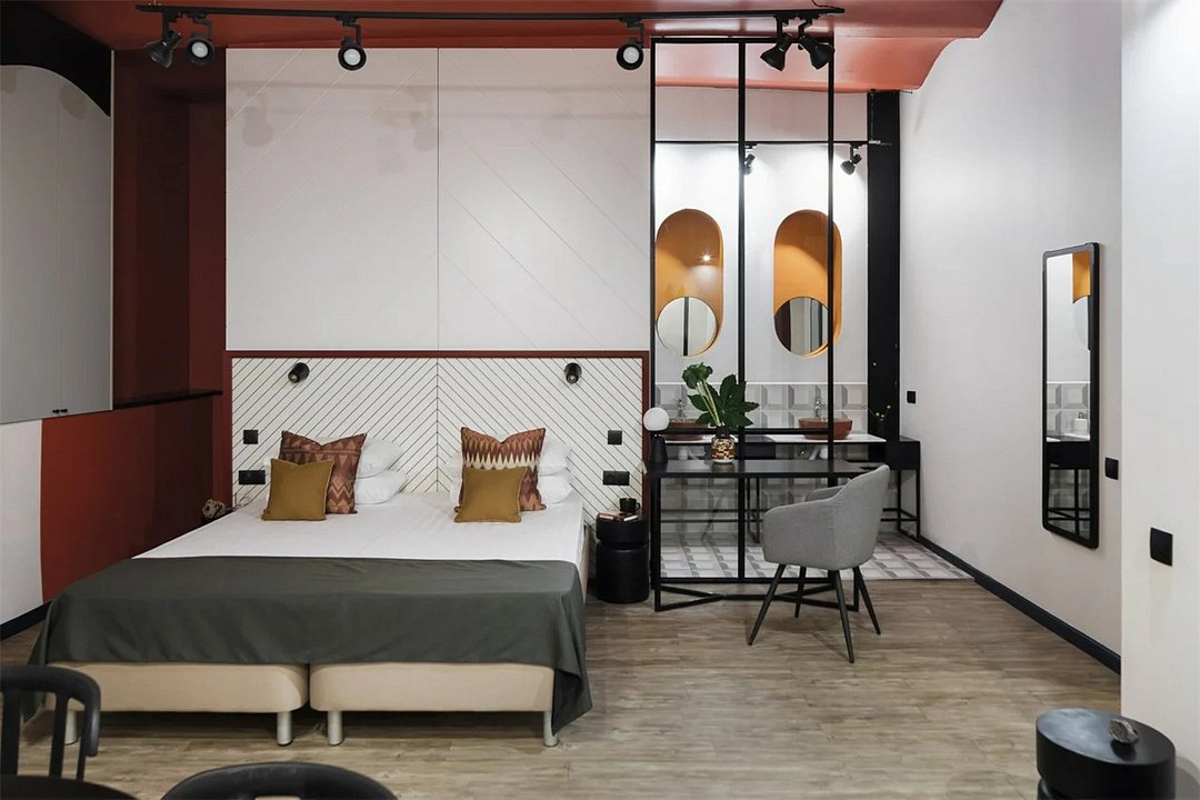 телевизор, кабельное телевидение, Wi-Fi, кондиционер, светильник, настольные лампы, фен, электронные замки, утюг, ванная комната, душевая кабина, ванна или душевая кабина, теплый пол, банные принадлежности, тапочки, гигиенические средства, косметические средства, кровать «King size», две односпальные или большая двуспальная кровать, ортопедический матрас, детская кровать, шкаф для одежды, вешалки, письменный стол, зеркало, мини-бар, чайный набор, обслуживание номеров, информационная карта, меню, сейф, унитаз, раковина, питьевая вода, ковровое покрытие, отопление, душ, вид на город, кулер на этаже, вид во двор, ламинат, стаканы, стул, стол, туалетные средства, туалет, телевизор с плоским экраном, мини-холодильник, москитная сетка, теплые полы, номер для некурящих, рабочий столВ номере