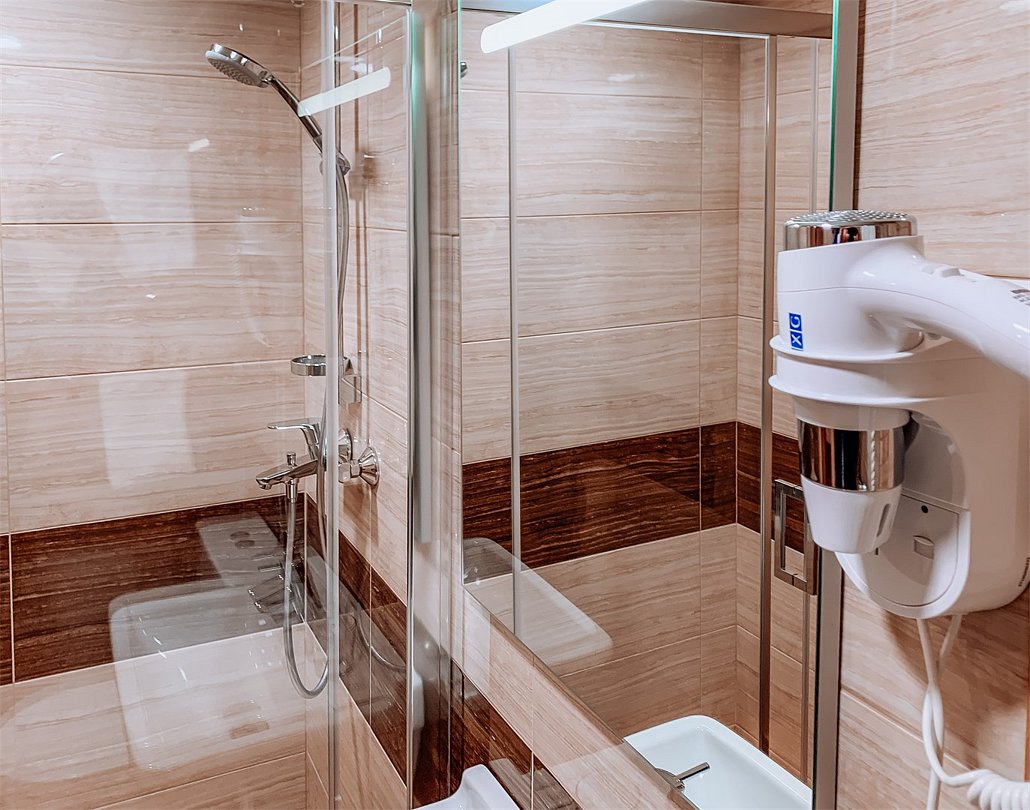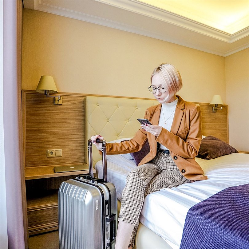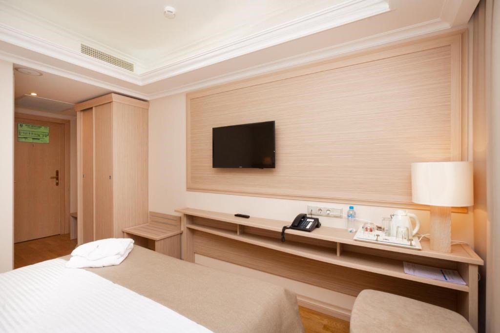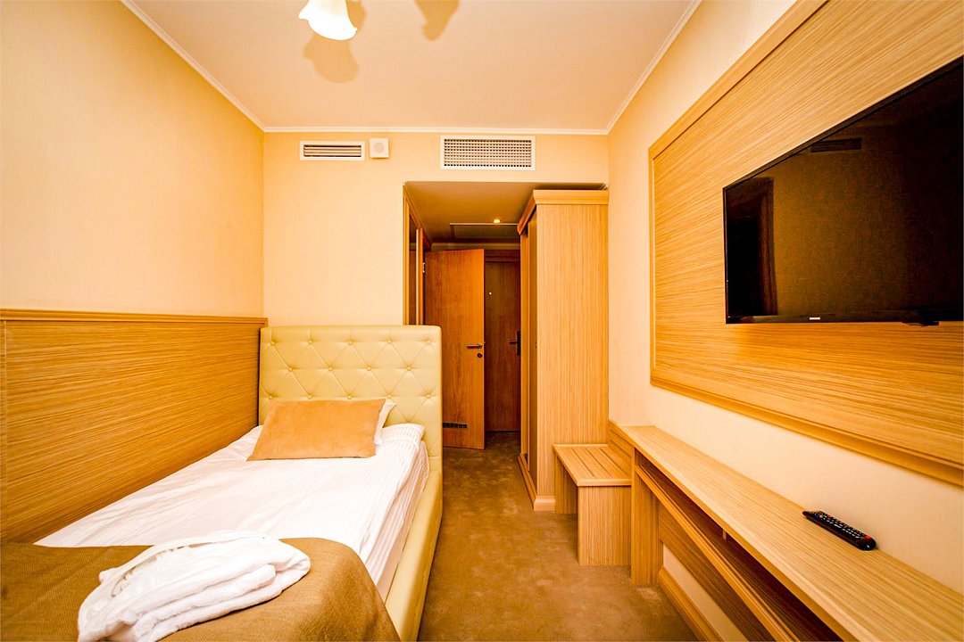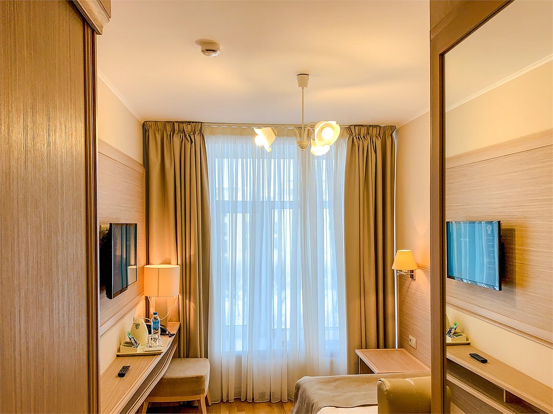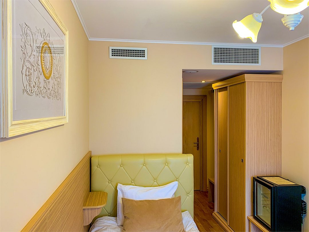 спутниковое телевидение, Wi-Fi, телефон, система климат-контроля, светильник, настольные лампы, фен, электронные замки, ванная комната, душевая кабина, косметические средства, односпальная кровать, шкаф для одежды, вешалки, багажная тумба, зеркало, обслуживание номеров, сейф, чайник, унитаз, раковина, косметическое зеркало, питьевая вода, отопление, душ, вид на город, вид во двор, стол, тумба, внутренний телефон, телевизор с плоским экраном, мини-холодильник, номер для некурящих, пуфикВ номере