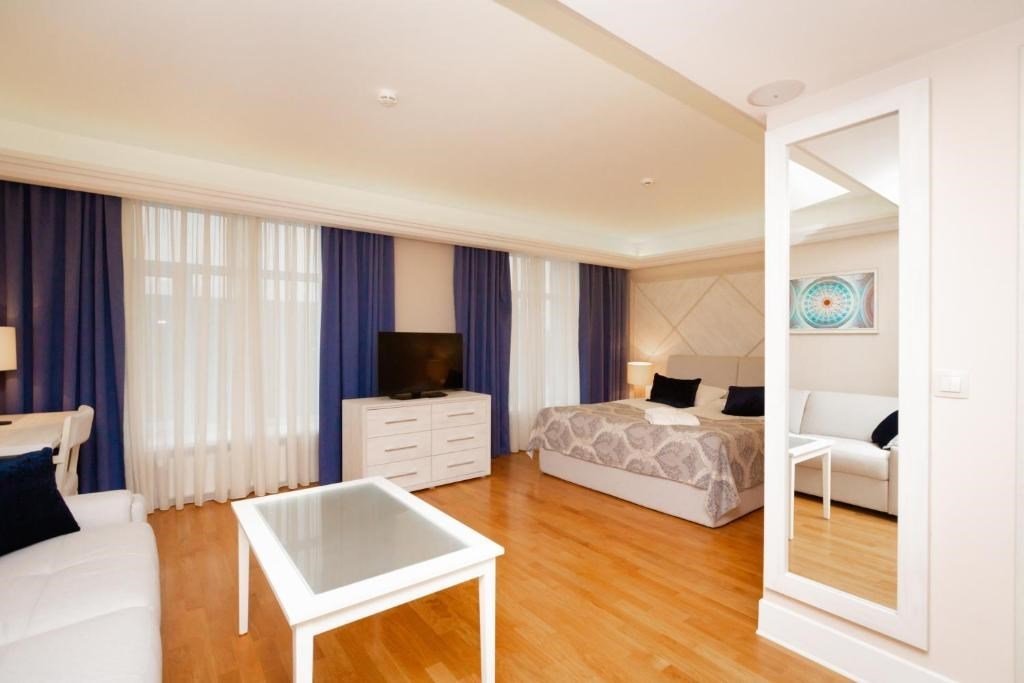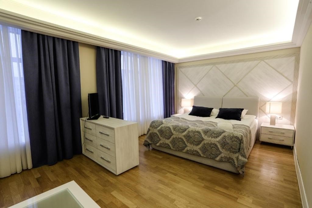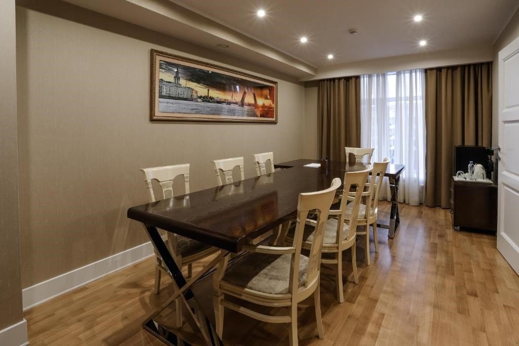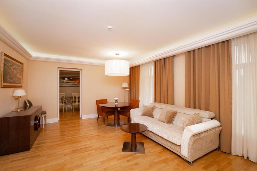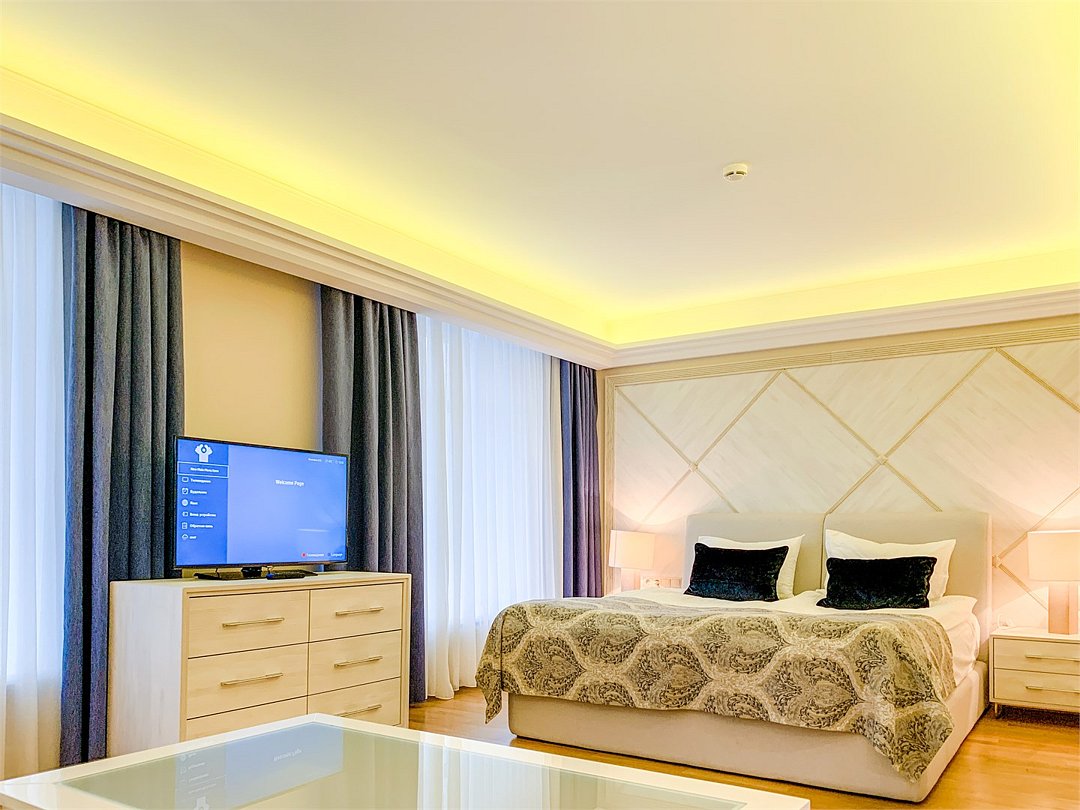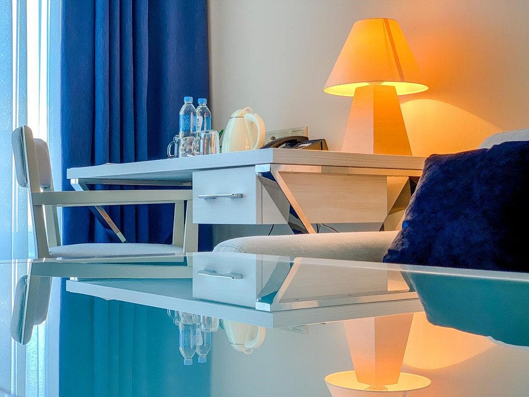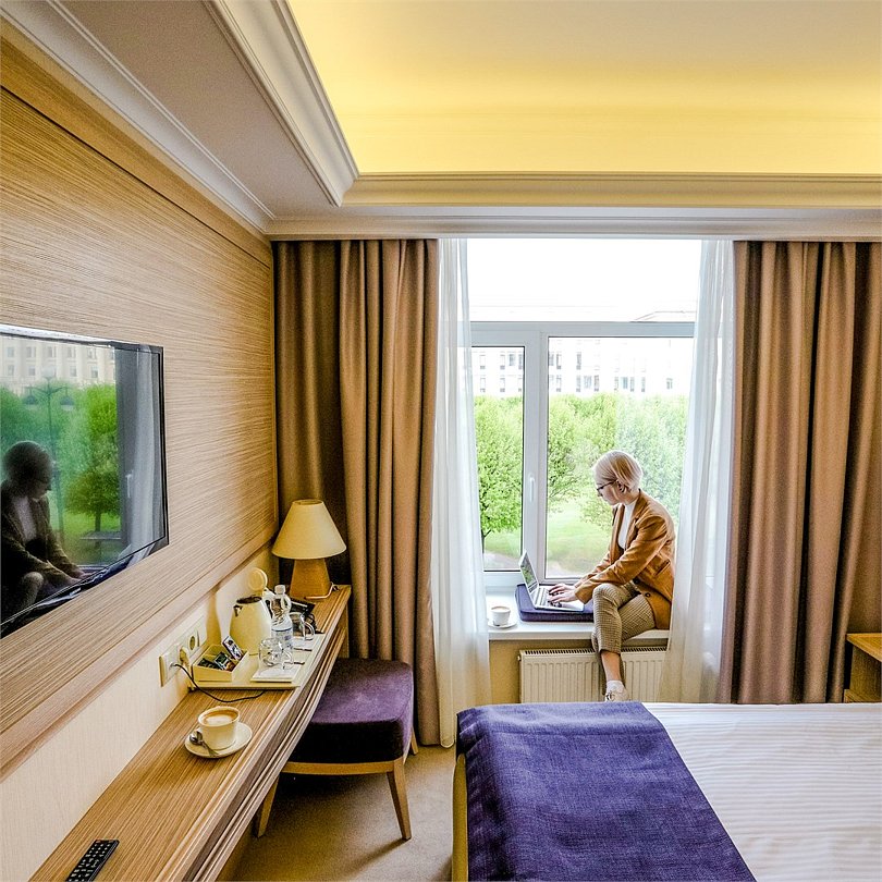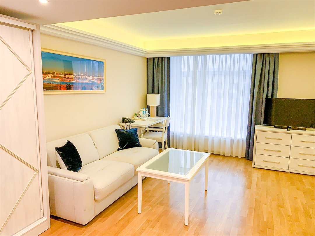 Апартаменты бизнес класса состоят из 3 комнат: кабинет/столовая, гостиная, спальня. Номер подойдет как деловым людям, нуждающимся в уюте и комфорте во время длительной командировки, так и будет идеальным решением для семей и компаний друзей, которые ценят удобство и хотят располагаться в одном номере. Данная категория станет для Вас в длительной поездке полноценной заменой дома!Услуги и удобства