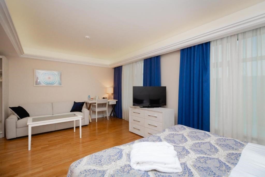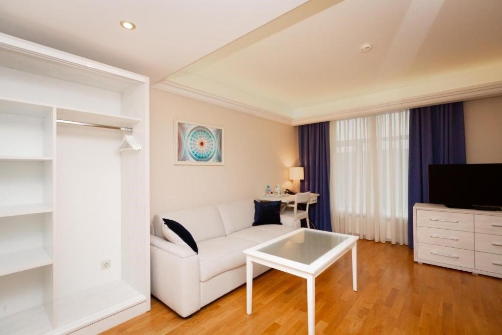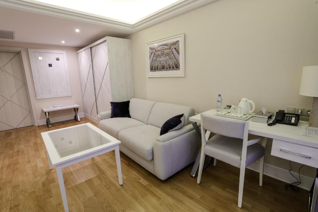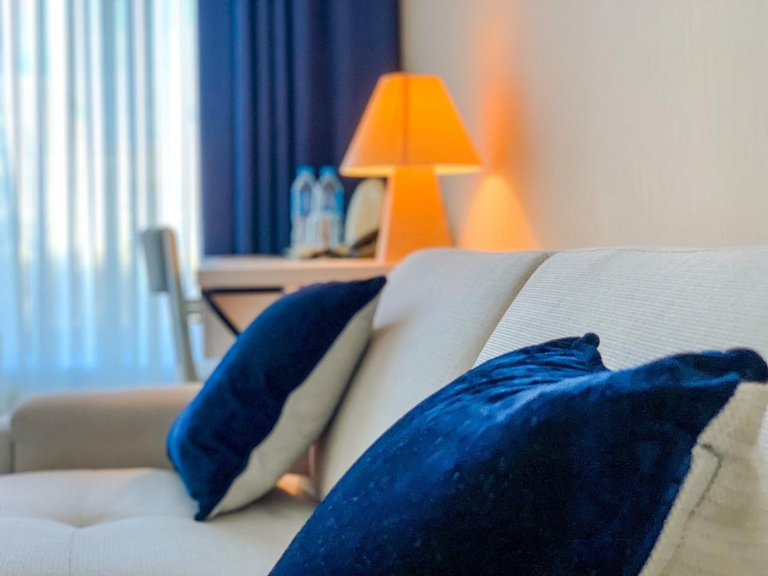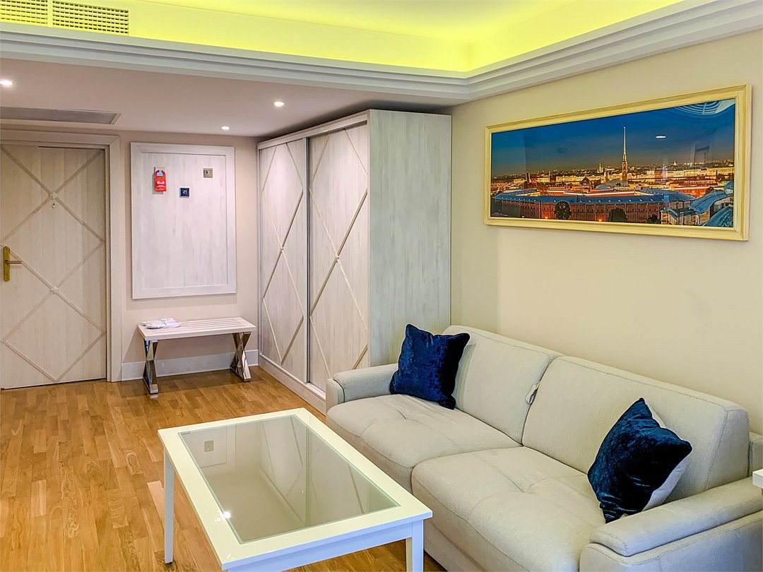 Просторный номер с отдельной гостиной зоной площадью 34 кв. м. идеально подходит для семейного размещения. В данной категории современная и удобная мебель представлена в виде большой кровати QUEEN SIZE и дивана-кровати.Услуги и удобства