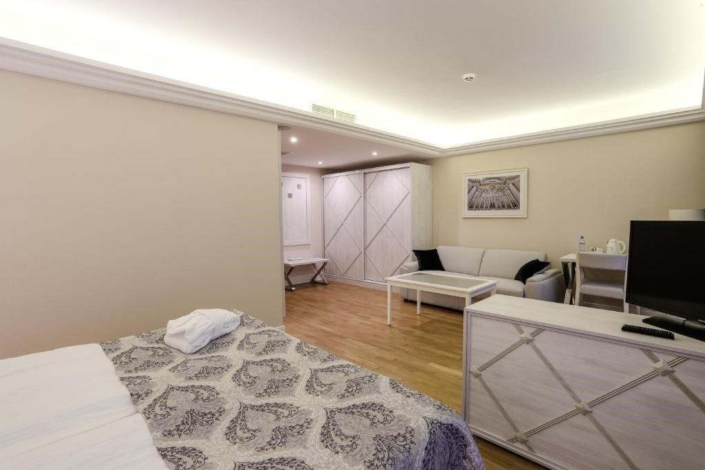 Современный номер с двумя изолированными комнатами: гостиной и спальней идеален для семейного отдыха или путешествия в компании. Большая двуспальная кровать в спальной и диван-кровать в гостиной для тех, кто ценит удобство и здоровый сон.Услуги и удобства