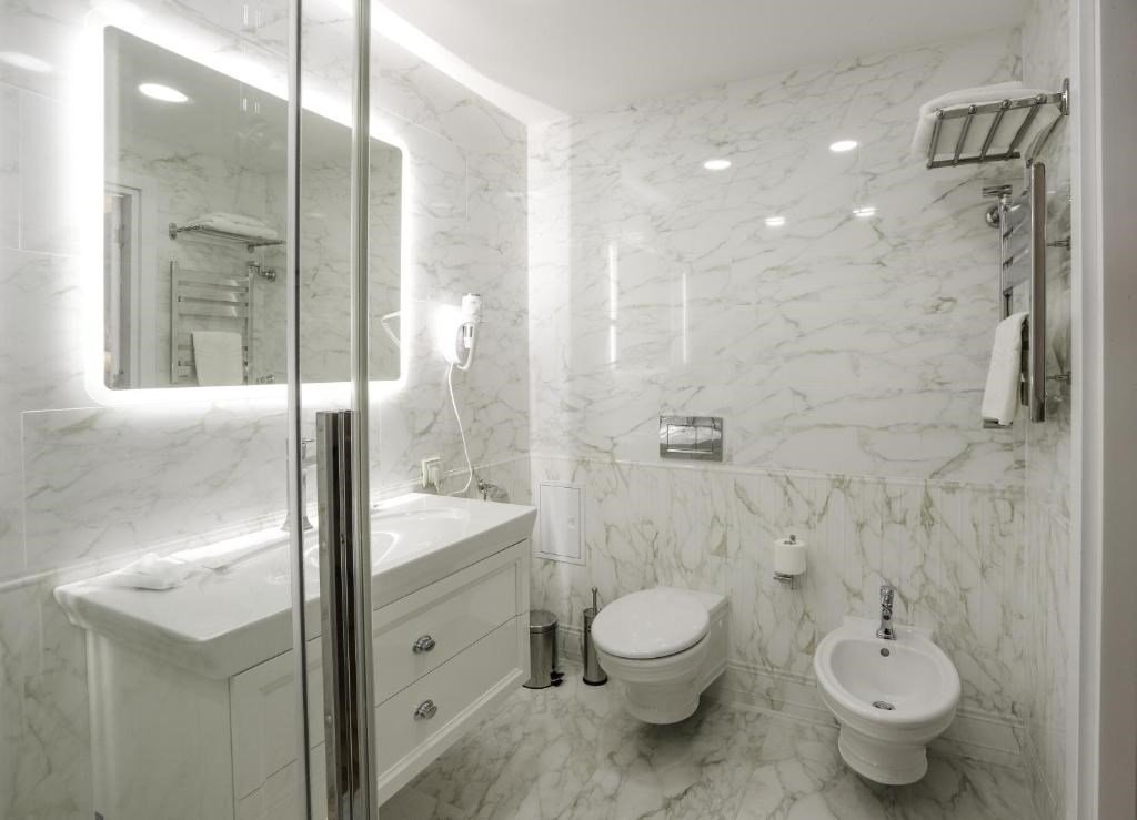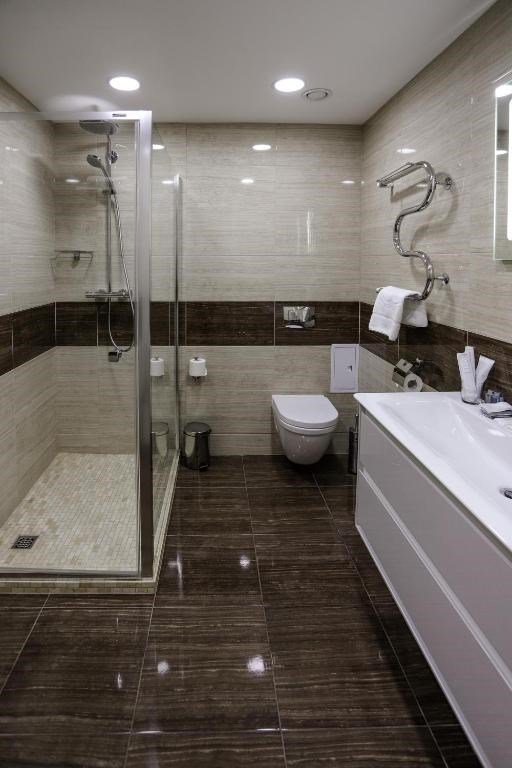 спутниковое телевидение, Wi-Fi, телефон, система климат-контроля, светильник, настольные лампы, фен, электронные замки, ванная комната, душевая кабина, халаты, банные полотенца, тапочки, косметические средства, кровать «King size», тумбы, стулья, шкаф для одежды, вешалки, журнальный столик, багажная тумба, зеркало, комод, чайный набор, сейф, чайник, унитаз, раковина, косметическое зеркало, питьевая вода, гостиная зона, отопление, вид на город, вид во двор, стол, диван-кровать, раскладной диван, внутренний телефон, телевизор с плоским экраном, мини-холодильник, номер для некурящихВ номере