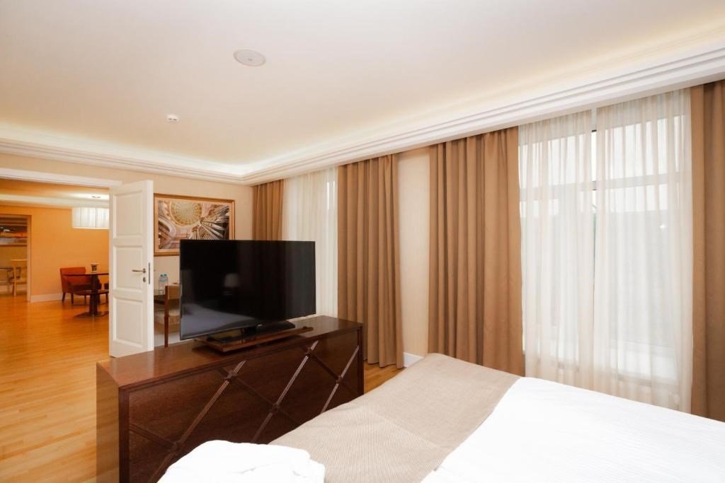 спутниковое телевидение, Wi-Fi, телефон, система климат-контроля, светильник, настольные лампы, фен, электронные замки, ванная комната, душевая кабина, халаты, банные полотенца, тапочки, косметические средства, двуспальная кровать, тумбы, шкаф для одежды, вешалки, багажная тумба, зеркало, две комнаты, чайный набор, сейф, чайник, унитаз, раковина, питьевая вода, гостиная зона, отопление, вид на город, вид во двор, стул, стол, диван-кровать, раскладной диван, внутренний телефон, телевизор с плоским экраном, мини-холодильник, номер для некурящихВ номере