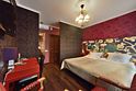 Роскошный двухкомнатный номер, стены которого украшают картины из частной коллекции. Состоит из гостиной, оснащенной диваном, шикарной спальни и просторной ванной комнаты, оборудованной джакузи. Оригинальное оформление интерьеров способно удовлетворить вкус самого привередливого гостя. Площадь номера - 45 кв.м.Услуги и удобства