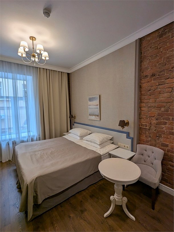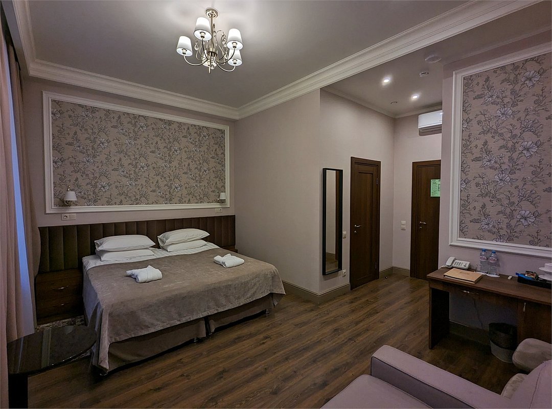 В основе интерьера этого лежит старая добрая классика. Это утонченный и элегантный номер отличается повышенной комфортностью. Полностью обновленный номер состоит из спальни и просторной ванной комнаты, оборудованной джакузи. Площадь данного номера 30-35 кв.м.Услуги и удобства