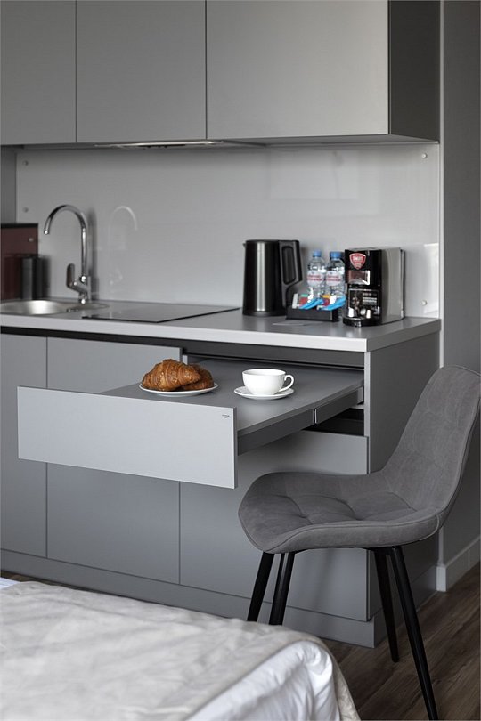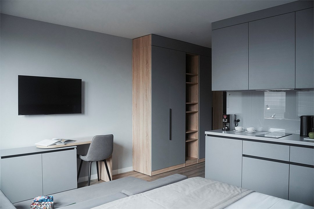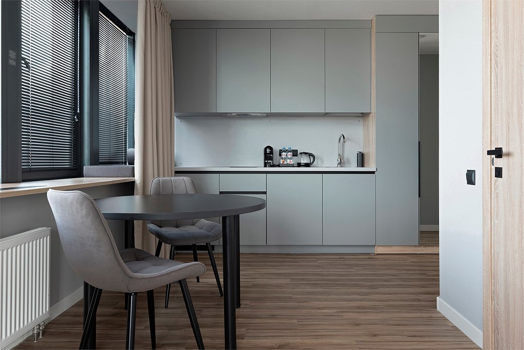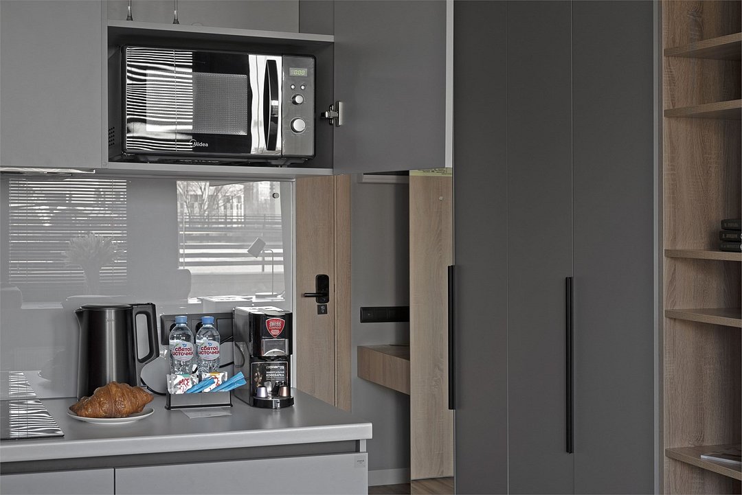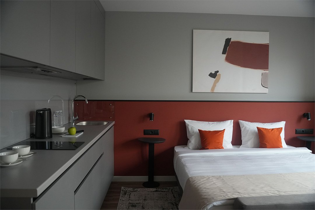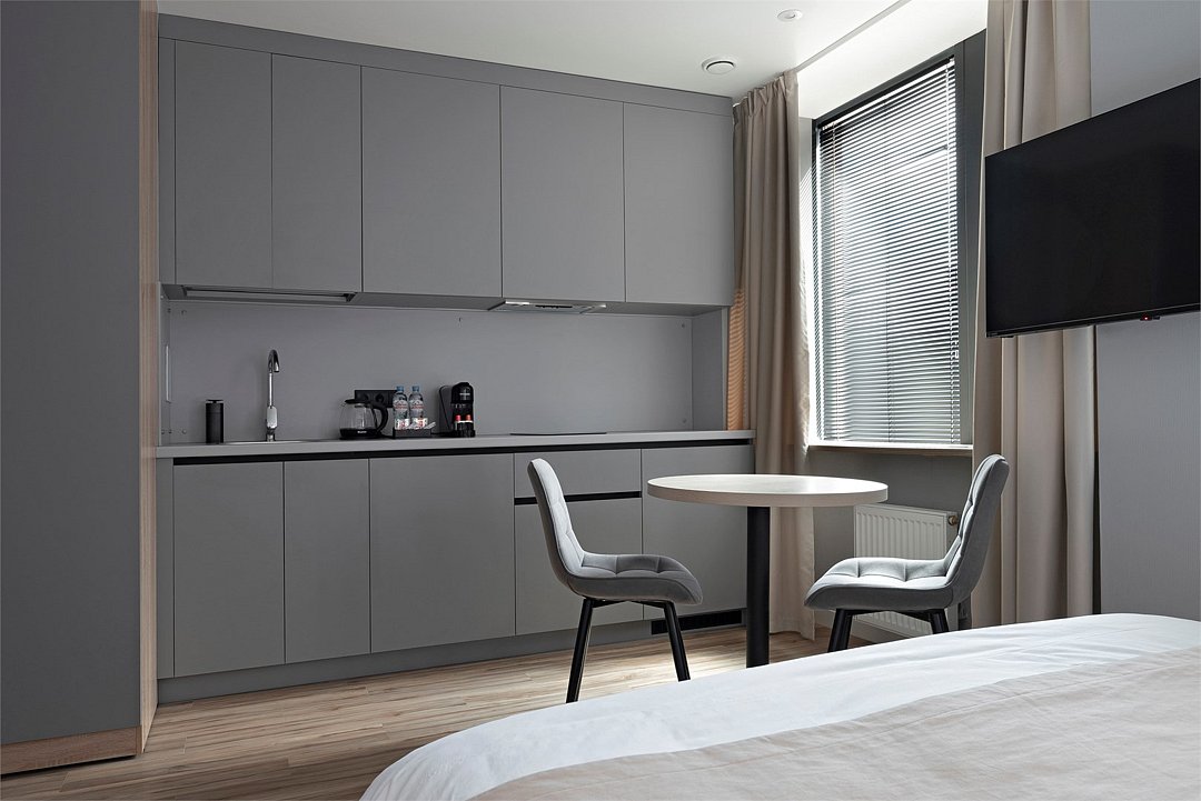 Стандартный номер 22-23кв.м. с кухней с варочной поверхностью, СВЧ-печью, чайником и мини-холодильником.Услуги и удобства