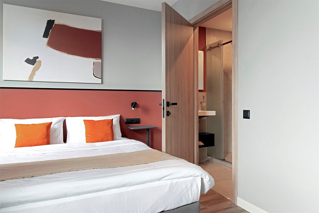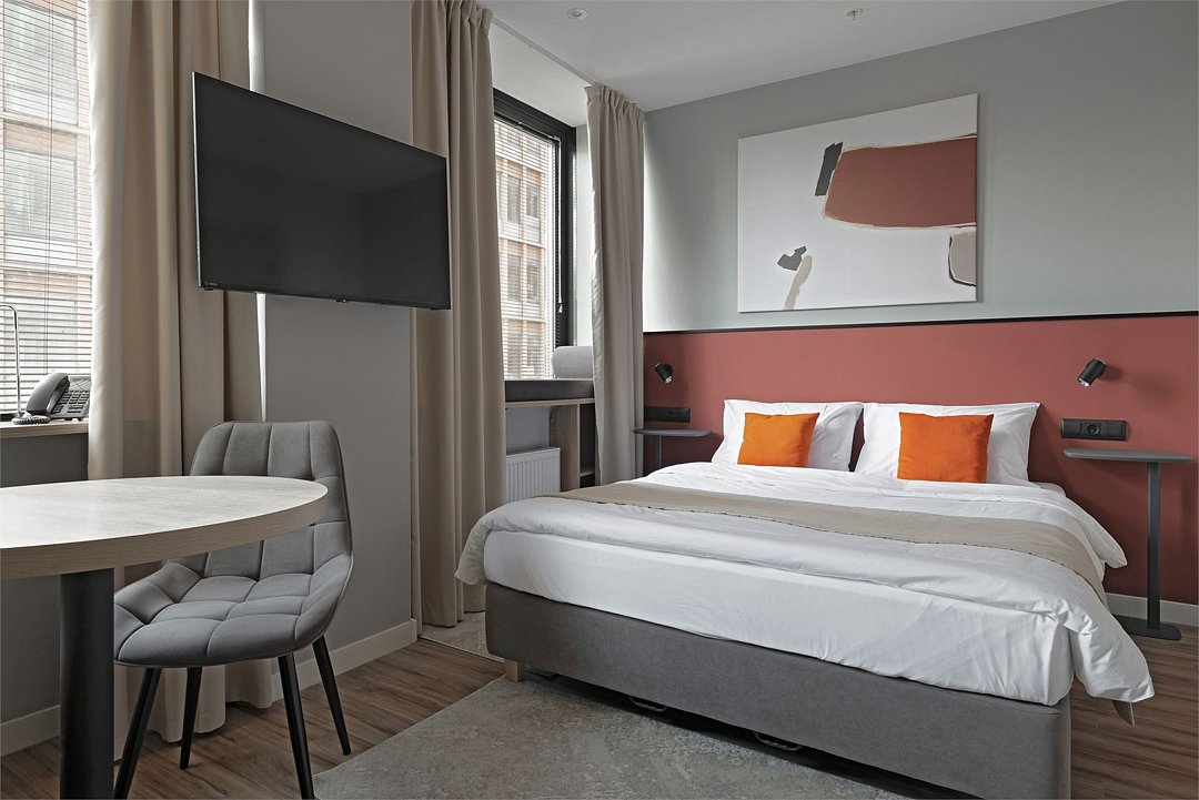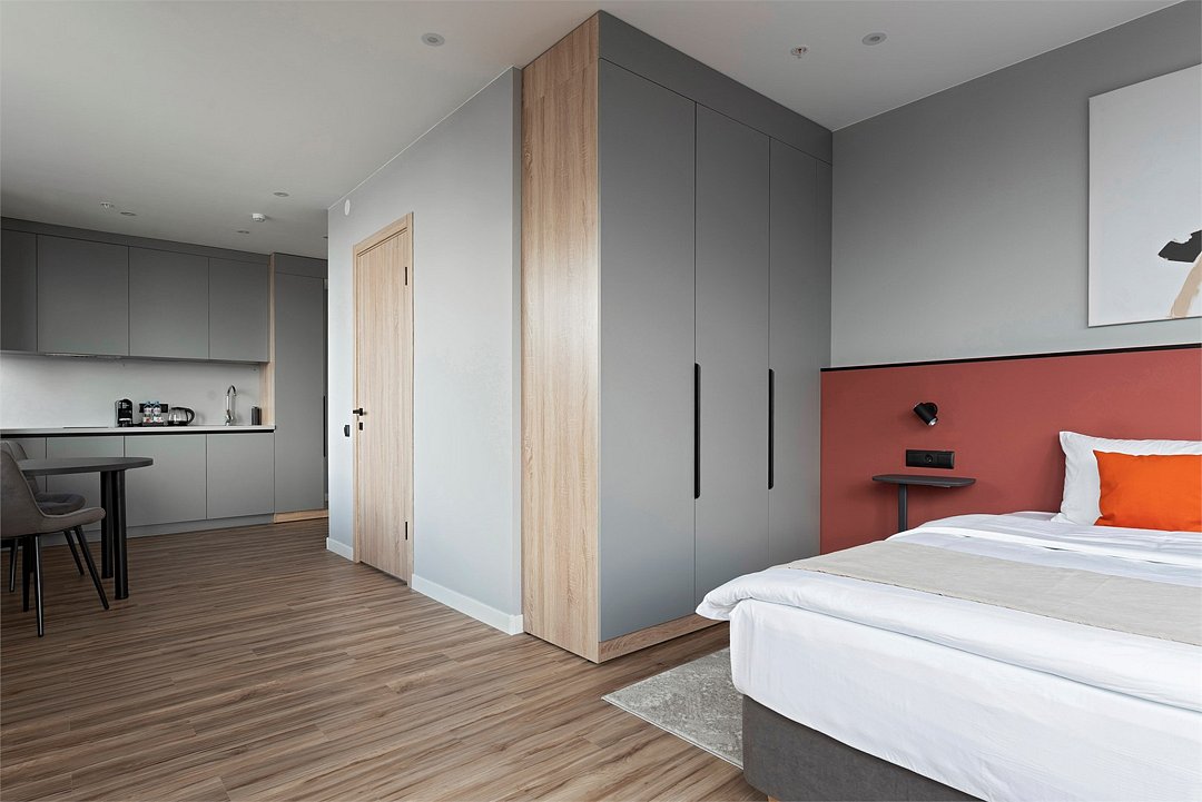 интерактивное телевидение, Wi-Fi, интернет, IP-телефон, система климат-контроля, светильник, настольные лампы, фен, система безопасности, электронные замки, плита для приготовления пищи, кофемашина, микроволновая печь, утюг, халаты, банные полотенца, тапочки, косметические средства, двуспальная кровать, гладильная доска, шкаф для одежды, вешалки, багажная тумба, мини-бар, письменные принадлежности, чайный набор, набор посуды, сейф, стиральная машина, чайник, питьевая вода, гостиная зона, отопление, душ, вид на город, кулер на этаже, центральное кондиционирование, вид во двор, кухонная посуда, кухонная утварь, столовые приборы, кофейный столик, стул, тумба, туалетные средства, туалет, сплит-система, телевизор с плоским экраном, мини-холодильник, кухонный уголок, телевизор со Smart TV, номер для некурящих, рабочий стол, электронный консьерж 24/7, система умный дом, фитнес-зона, чайная станция, умная колонка, экологичный подход, уборка номера, набор для приготовления чая и кофе, вешалки-плечики, шапочка для душа, кофеварка, зеркало в полный рост, открытый шкаф, коворкинг, прачечная (за дополнительную плату), еда на вынос (за дополнительную плату), можно с питомцами, мискаВ номере