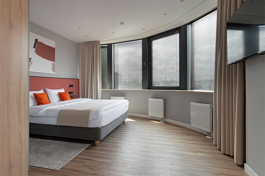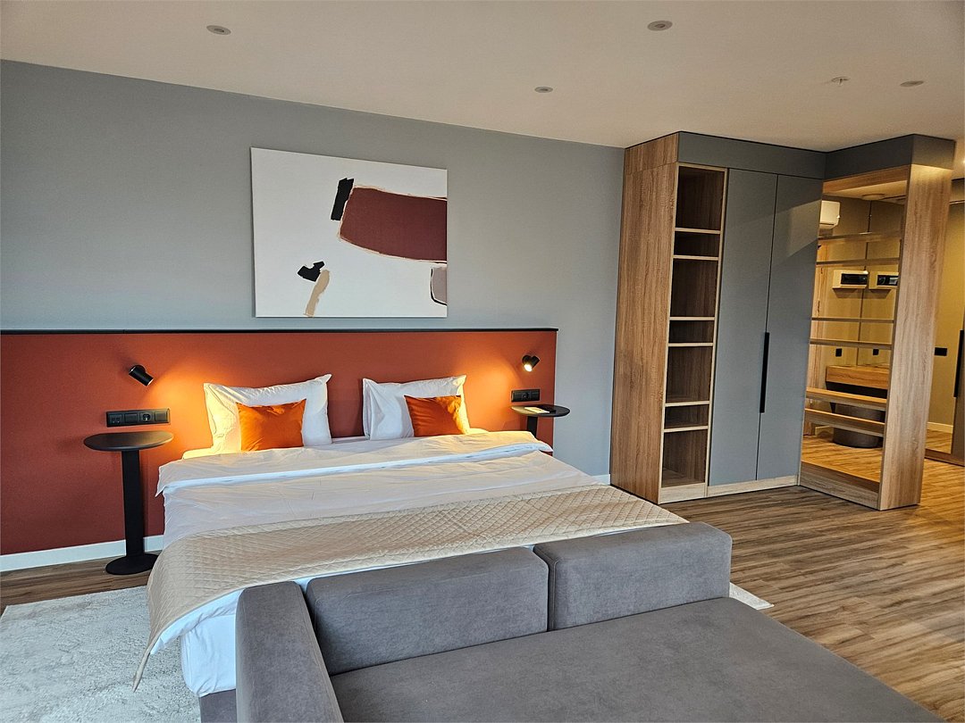 + ВКУСНЫЙ приветственный комплимент от Отеля. Просторный номер 45 кв.м. идеально подойдет как для семьи, так и для пары, а также для одиночных гостей, ценящих объемное личное пространство.Услуги и удобства