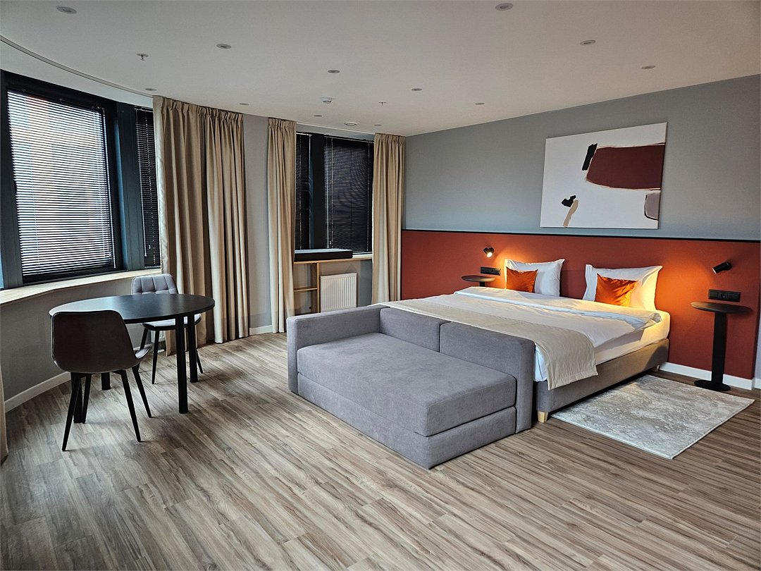 + ВКУСНЫЙ приветственный комплимент от Отеля. Просторный номер 30кв.м. с двуспальной кроватью и гостевой / детской / ТВ зоной с удобным диваном и раскладным письменным столом. Некоторые номера данной категории также подходят для гостей с ограниченными возможностями.Услуги и удобства