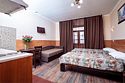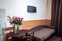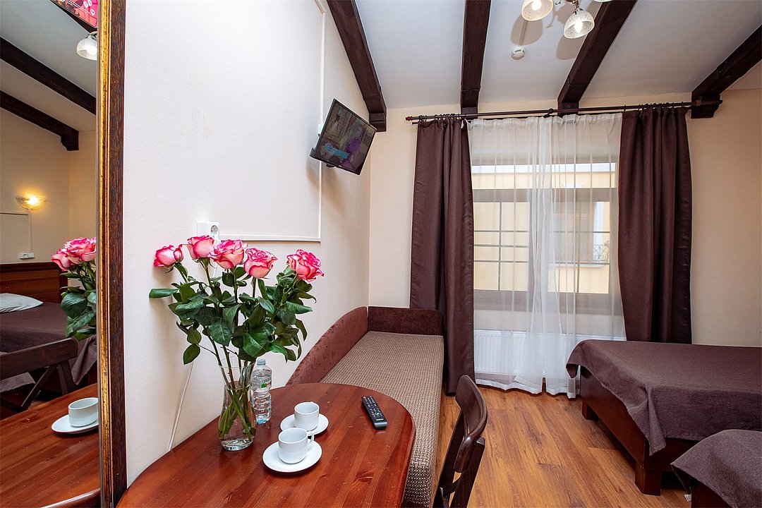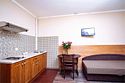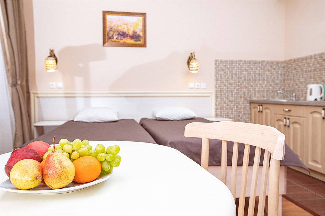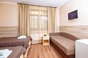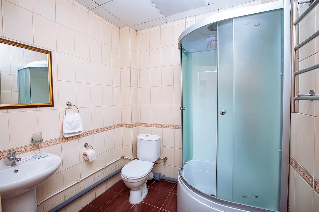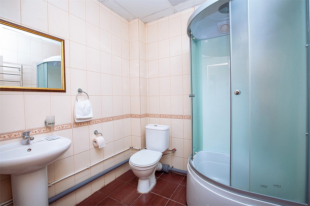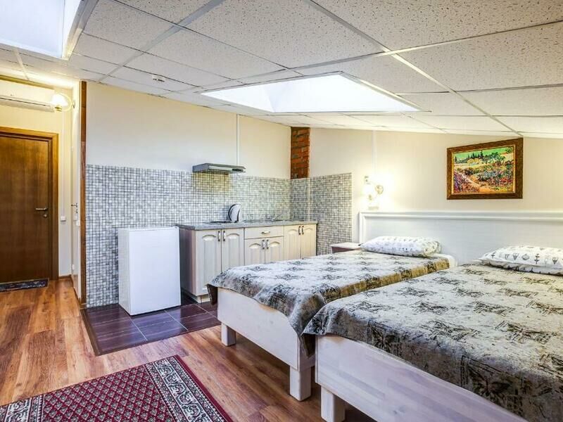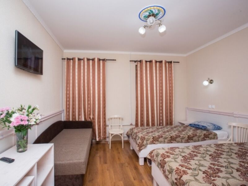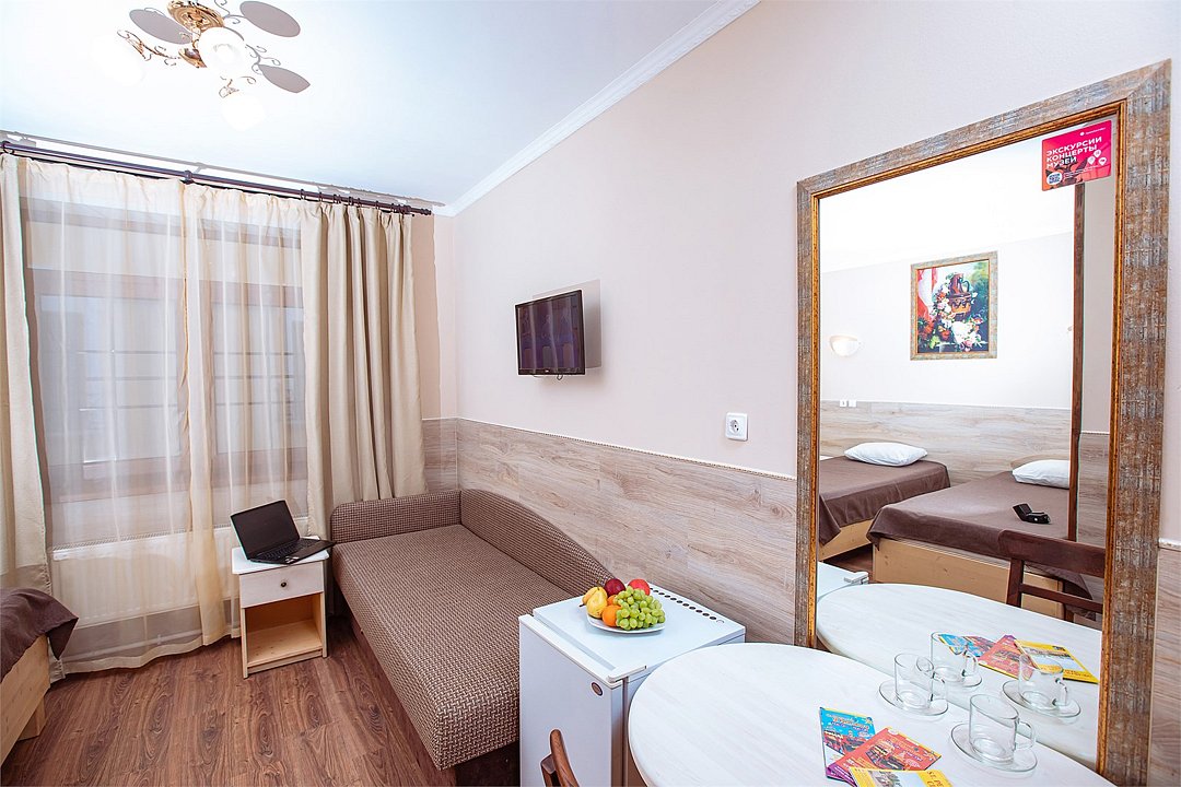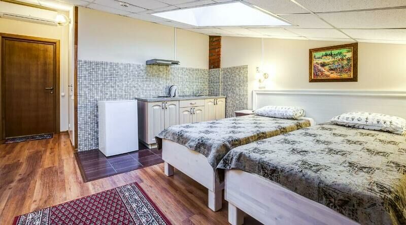 Однокомнатный номер с удобствами. Две односпальные кровати. Телевизор, холодильник, фен. Душевая кабина.Wi-fi в номере. Место на третьего чел.: кровать/диван/еврораскладушка