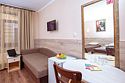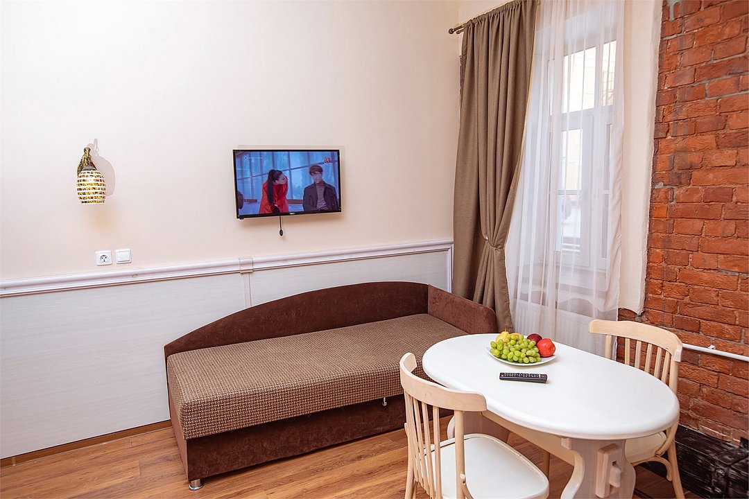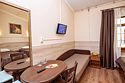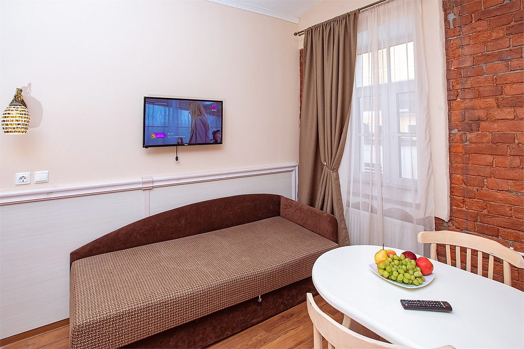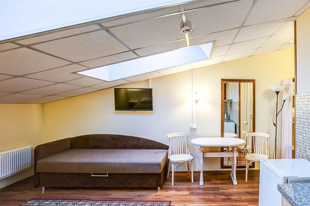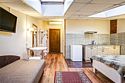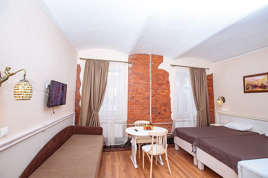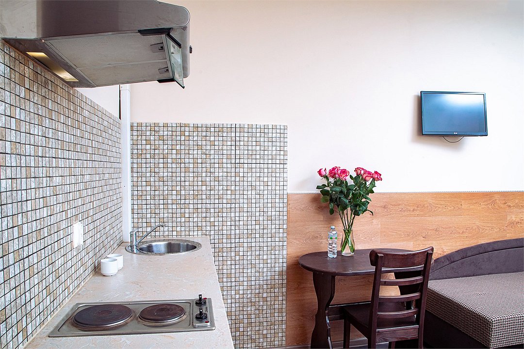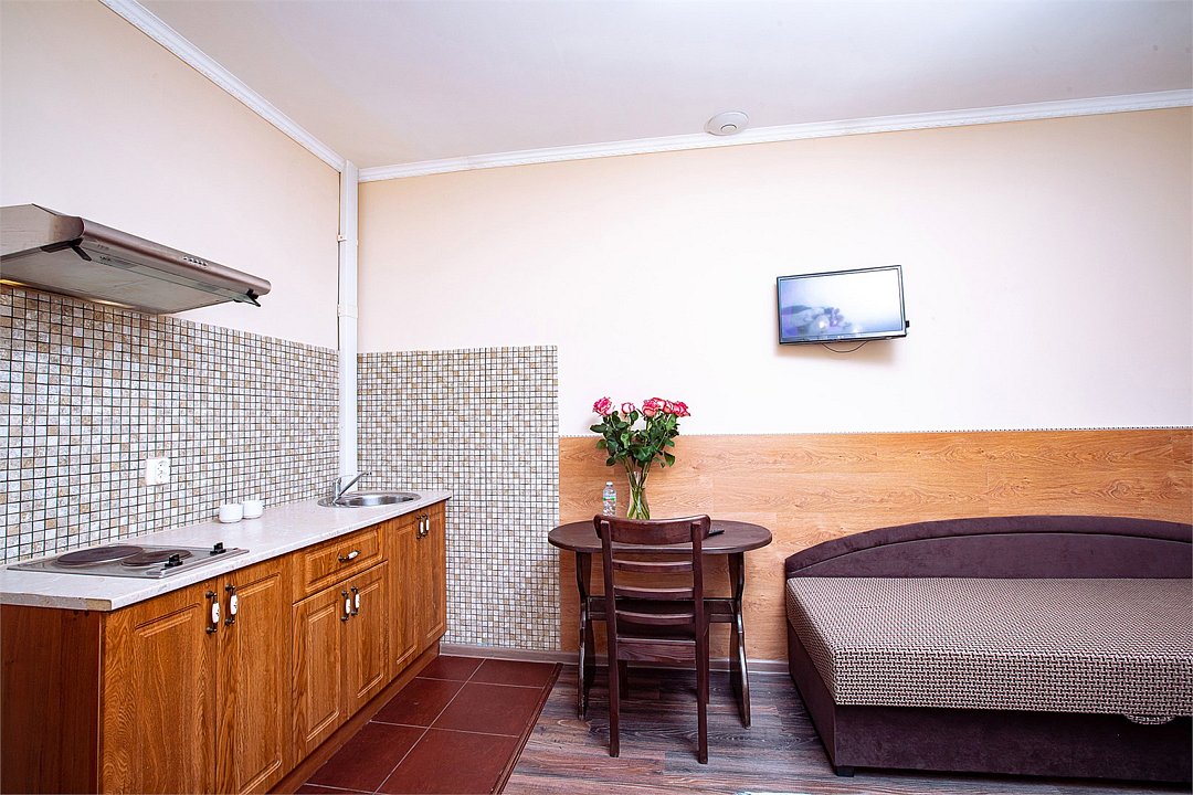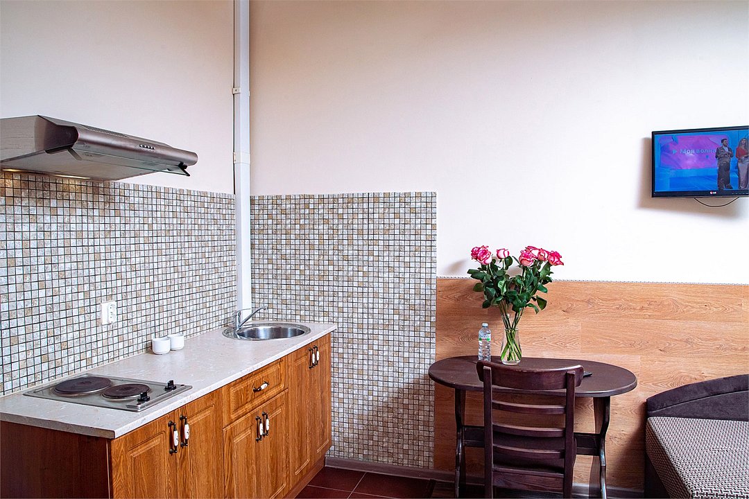 Ищете недорогой и комфортный вариант для проживания в Санкт-Петербурге? Наши номера-студии идеально подойдут для 1-4 гостей, особенно если вы планируете длительное пребывание или путешествуете с детьми. Площадь номера варьируется от 23 до 25 м². В каждом номере вас ждет функциональная кухонная зона и уютный вид во внутренний дворик. В номере: Кухонная зона с плитой и вытяжкой 2 или 3 раздельные кровати Диван-тахта (в большинстве номеров) Телевизор с плоским экраном Холодильник Обеденный стол и стулья Шкаф или гардероб с вешалками Центральное отопление Зеркало Собственная ванная комната с душем и туалетом Фен Полотенца В корпусе - кулер с горячей и холодной водой, микроволновая печьУслуги и удобства