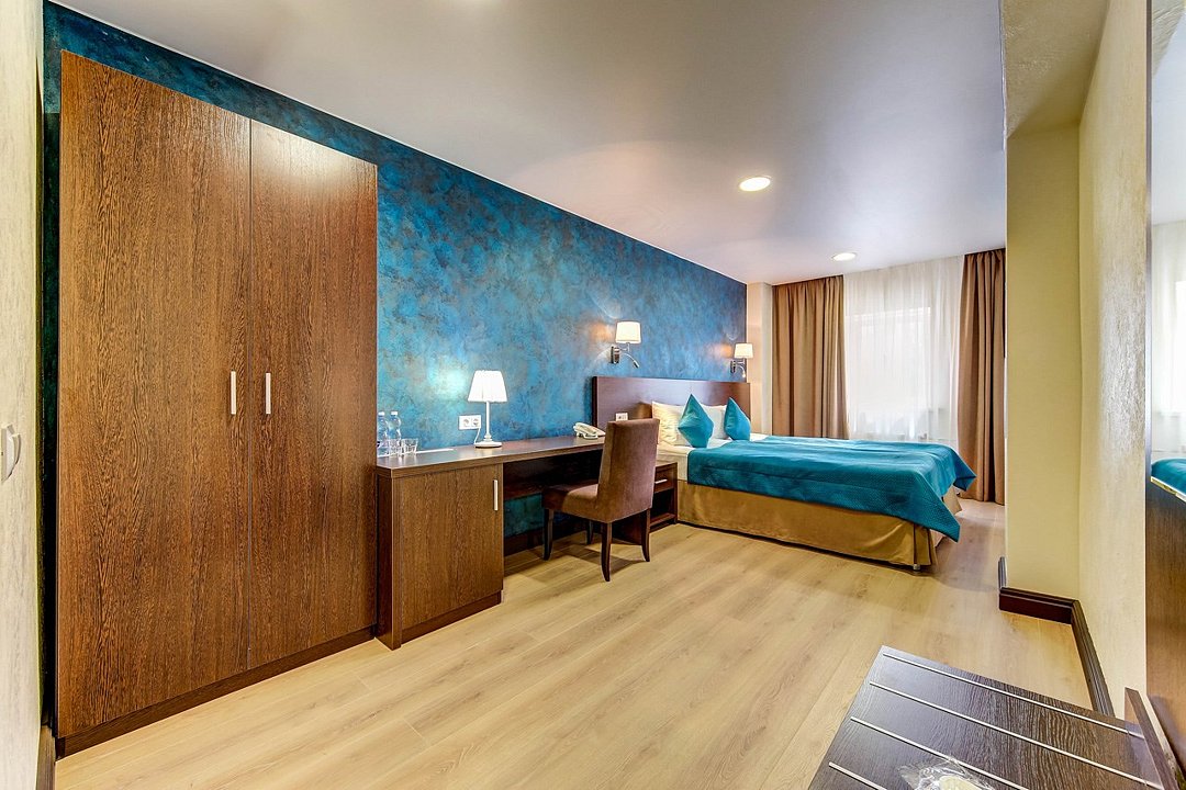 Это однокомнатный номер с одной двуспальной или двумя раздельными односпальными кроватями. Бронировать номер стандарт предпочитают те из наших гостей, кто путешествует парой или с близким человеком. Это удобно, так как в этой категории номеров представлены варианты - можно забронировать номер с одной большой двуспальной кроватью или с двумя отдельными спальными местами. Как и во всех номерах отеля «Академия» здесь гости найдут всё необходимое для удобной жизни - мебель, технику и прекрасно оборудованную ванную.Услуги и удобства