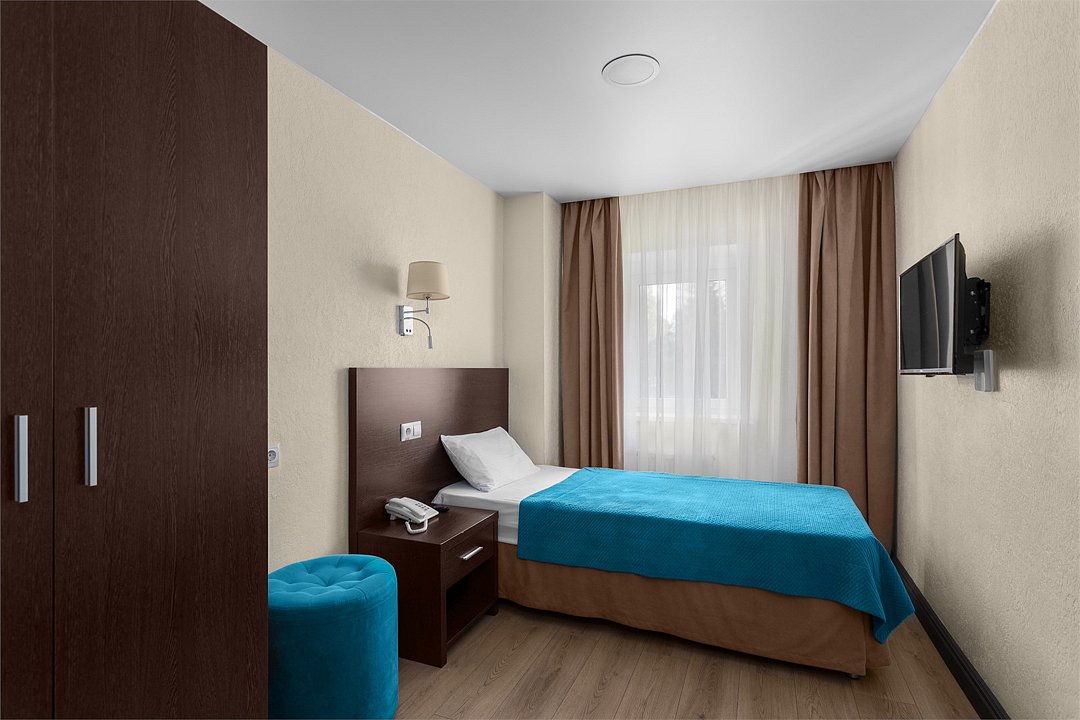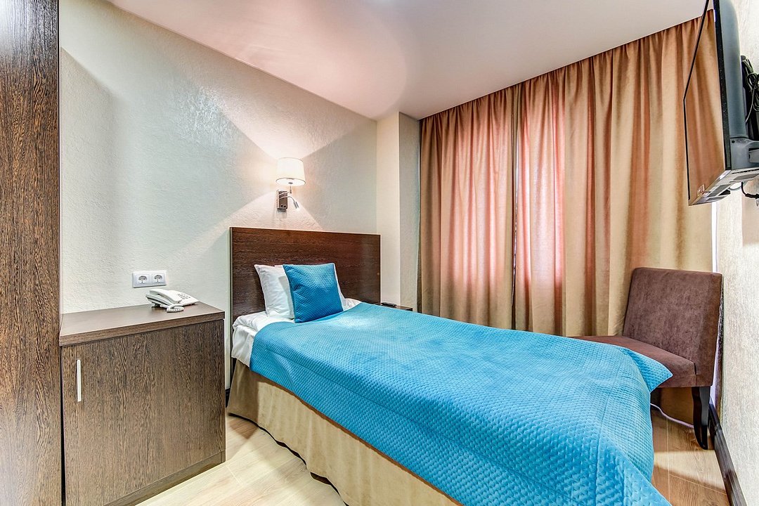 Это однокомнатный номер с односпальной кроватью. Забронировать одноместный номер могут те наши гости, которые приехали в Петербург по делам или просто любят путешествовать в одиночестве. Наш номер - уютное пространство, в котором комфортно отдыхать, и где есть всё, что необходимо для грамотной организации быта. Одноместные номера в нашем отеле «Академия» обставлены лаконично и со вкусом. Кроме кровати в номере есть вместительный шкаф с вешалками, а также две удобных тумбочки, телевизор и кресло. Во всех номерах гостей ждём вместительная ванная комната, также оснащенная всем необходимым.Услуги и удобства