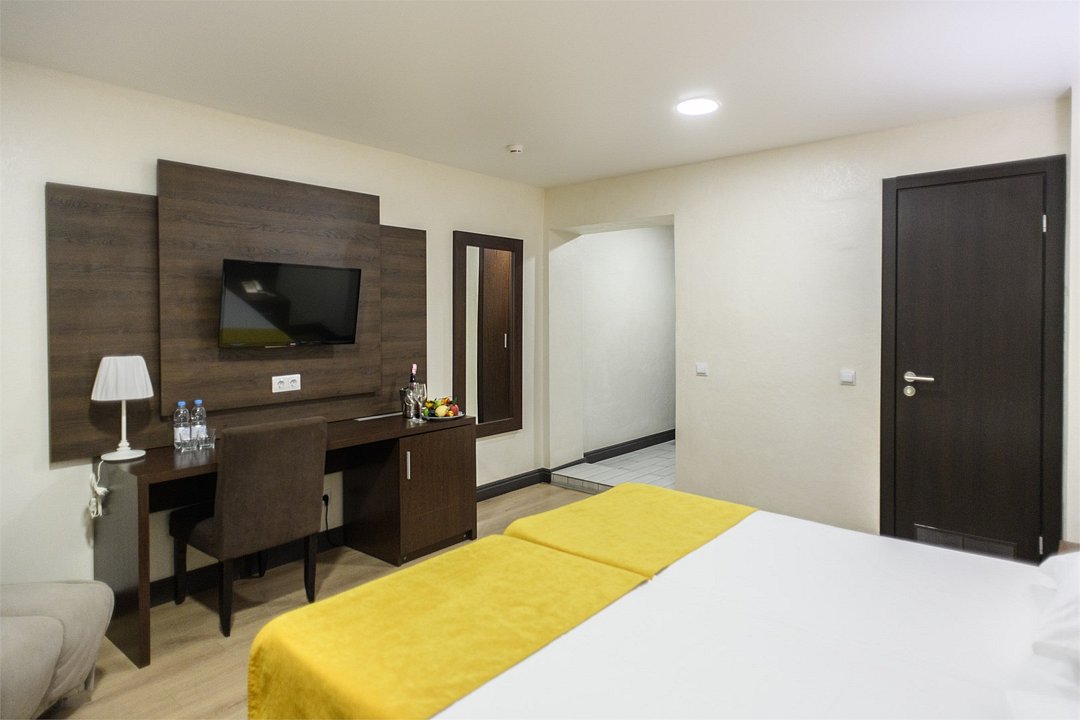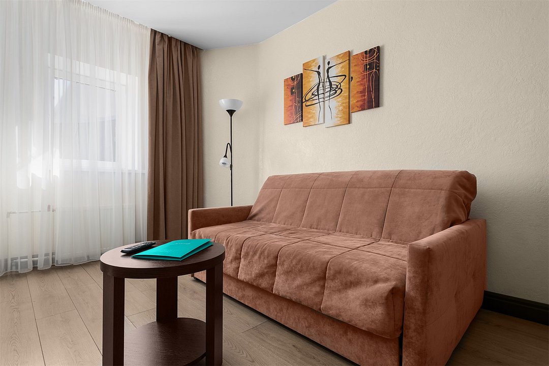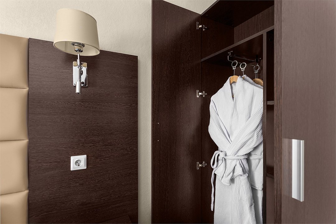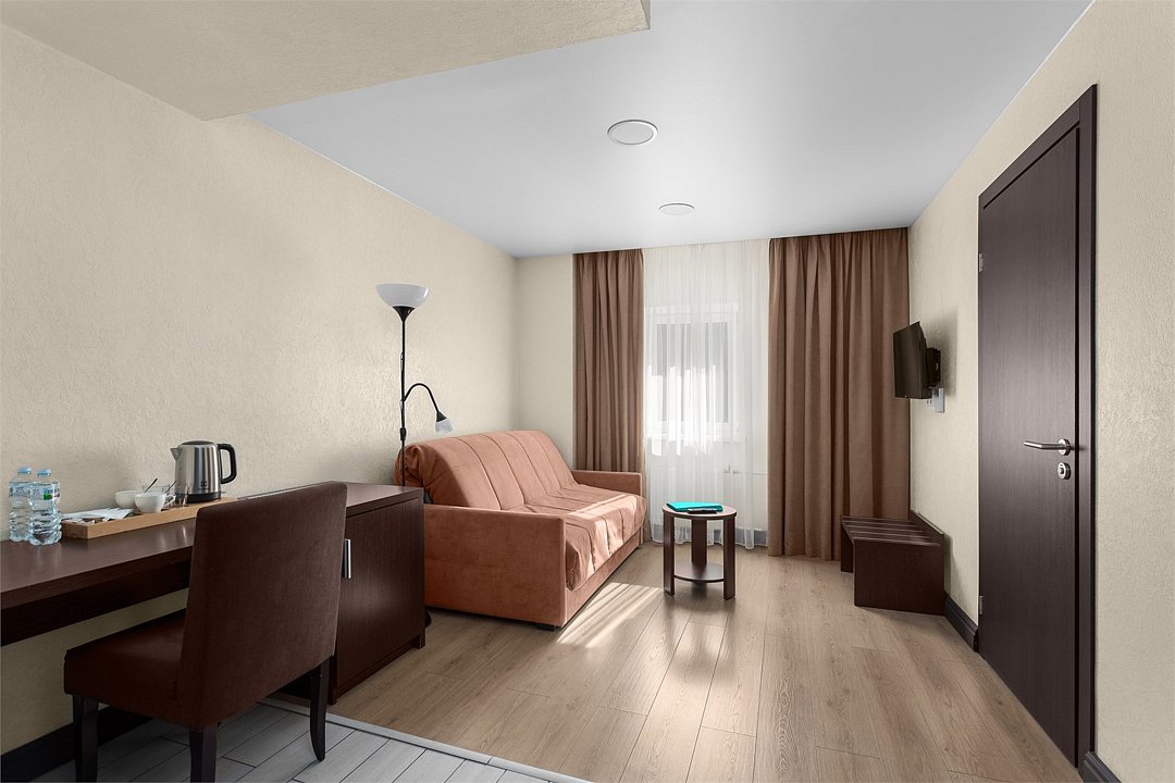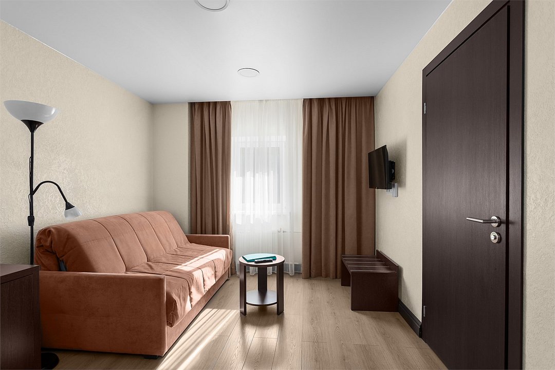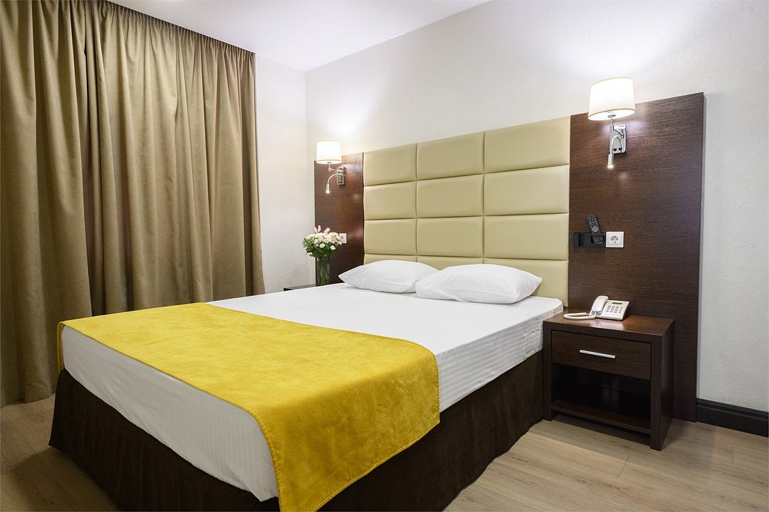 Это однокомнатный номер с двумя комфортабельными кроватями и креслом. Те, кто решает забронировать номер комфорт, ищут идеальный баланс стоимости и удобства. Номер комфорт - это просторный номер с двумя удобными кроватями, уютной зоной для отдыха с мягким вместительным креслом, вместительной прихожей и санузлом, который впечатляет и размерами, и отличным оснащением всем необходимым для того, чтобы гости чувствовали себя как дома.Услуги и удобства