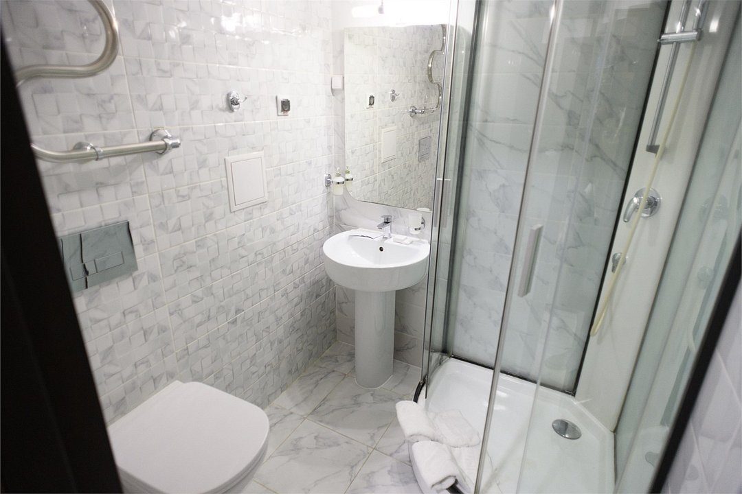 кабельное телевидение, Wi-Fi, телефон, душевая кабина, банные полотенца, косметические средства, односпальная кровать, шкаф для одежды, багажная тумба, зеркало, пуфики, унитаз, стул, туалет, внутренний телефон, вешалки-плечики, без питомцевВ гостиничном номере