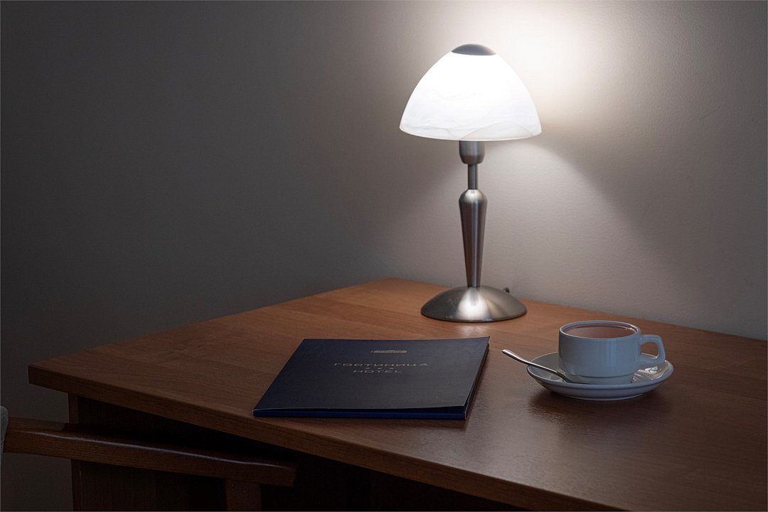 Уютный и функциональный номер подходит для работы и отдыха. Площадь номера 35 кв. м. В номере спальная зона с большой двуспальной кроватью, рабочим столом, кондиционером, телевизором, холодильником, чайником и посудой.Услуги и удобства