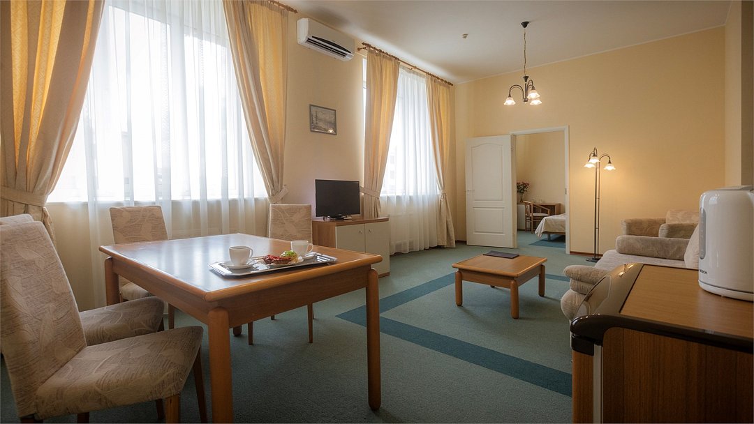 Двухкомнатный номер, призванный обеспечить максимальный комфорт в деловой поездке или на отдыхе.Услуги и удобства