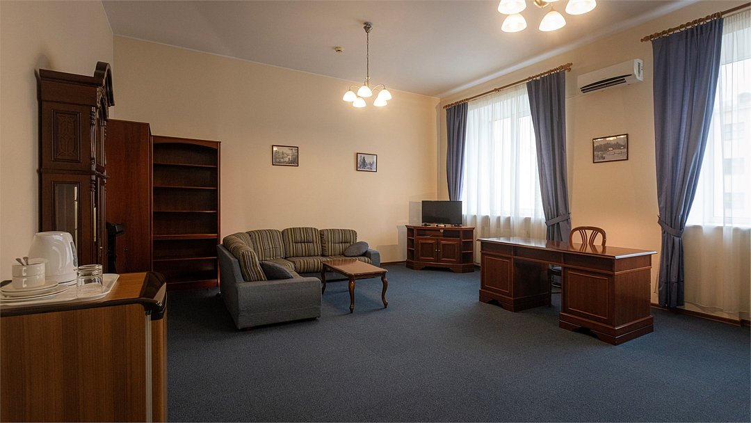 Один из самых просторных номеров в своей категории среди гостиниц и отелей Санкт-Петербурга. В номере есть гостиная и спальня общей площадью 70 квадратных метров.Услуги и удобства
