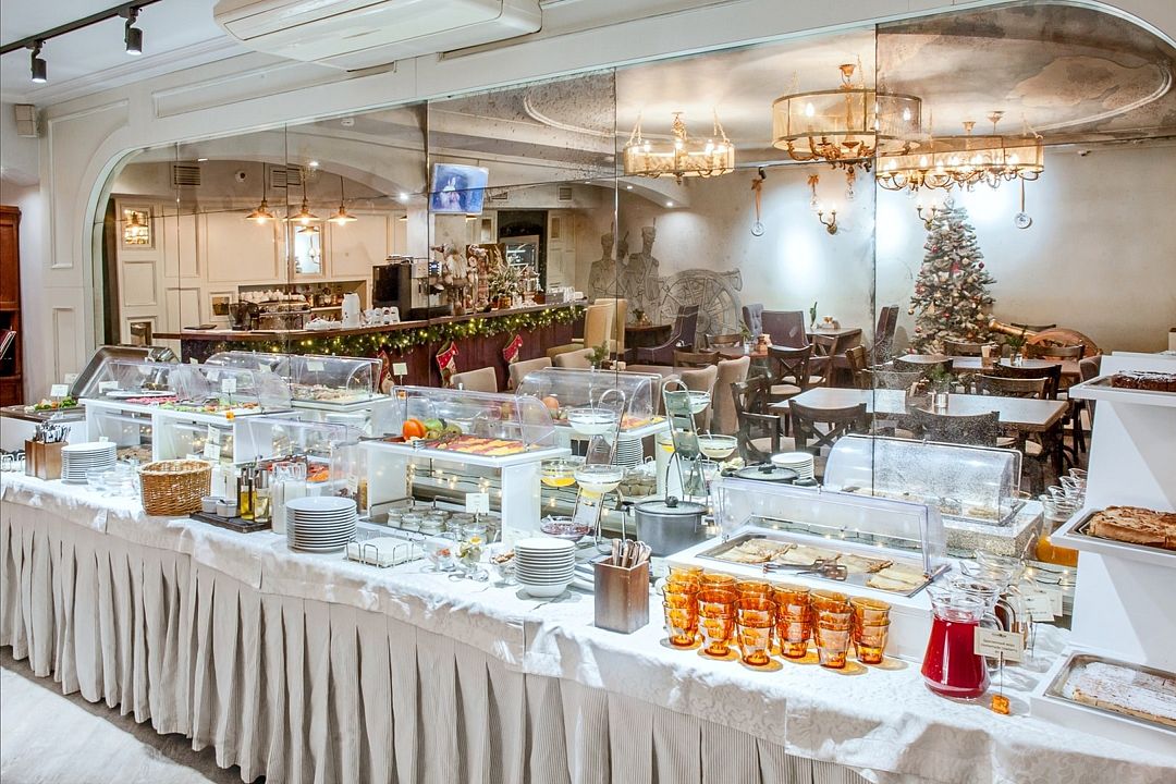 Утром ресторан «Janno» предлагает своим гостям завтрак в формате Шведского стола, с видом на набережную реки Мойки в самом сердце города, ежедневно с 8 до 11.