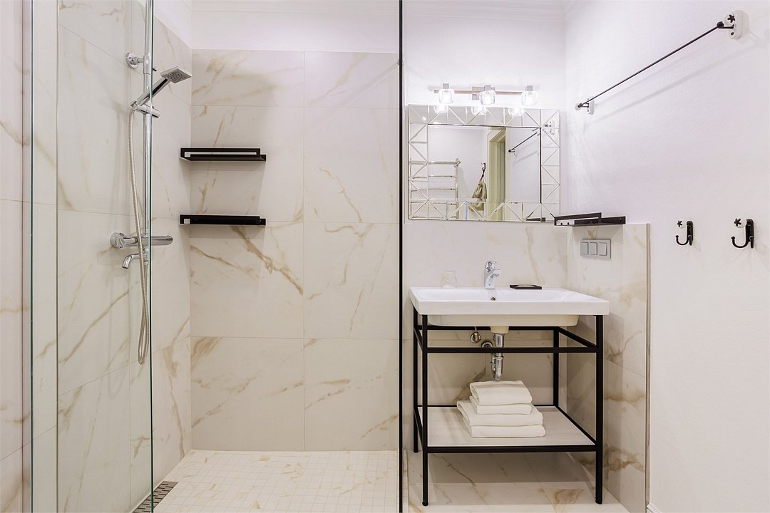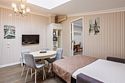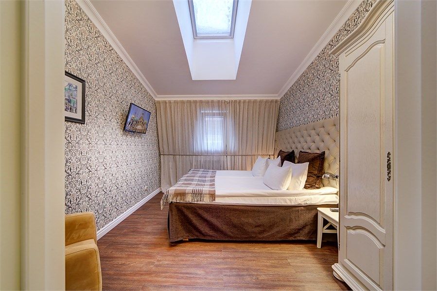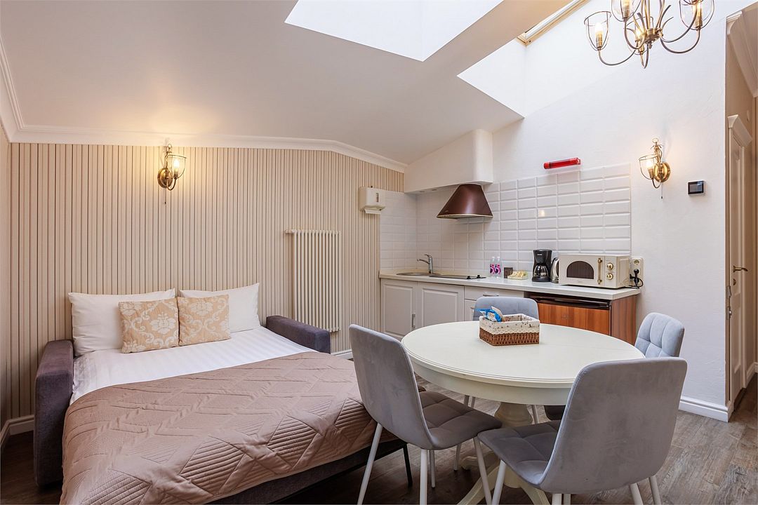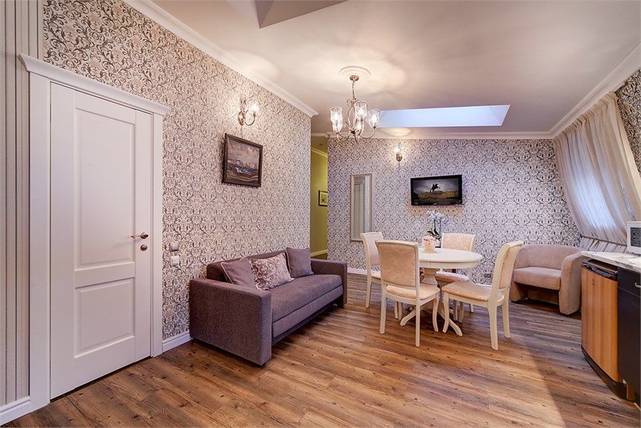 Номера на мансардном этаже средней площадью 40 кв м с двухместной спальней, гостиной, душевой комнатой. В гостиной выделена кухонная зона со всей необходимой встроенной техникой и набором посуды.Услуги и удобства