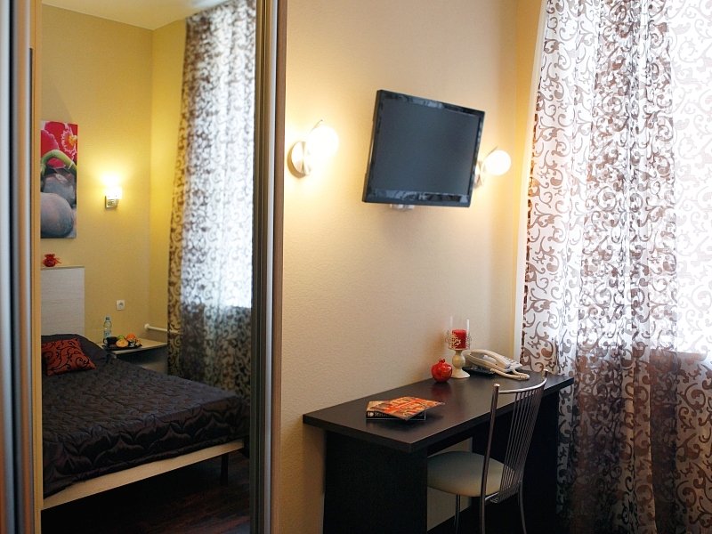 Номер уютно обставлен и оснащён необходимым, чтобы отдохнуть после долгого и насыщенного дня. Имеются душ, телевизор, халат и тапочки. Оснащение зависит от выбранной категории номера.