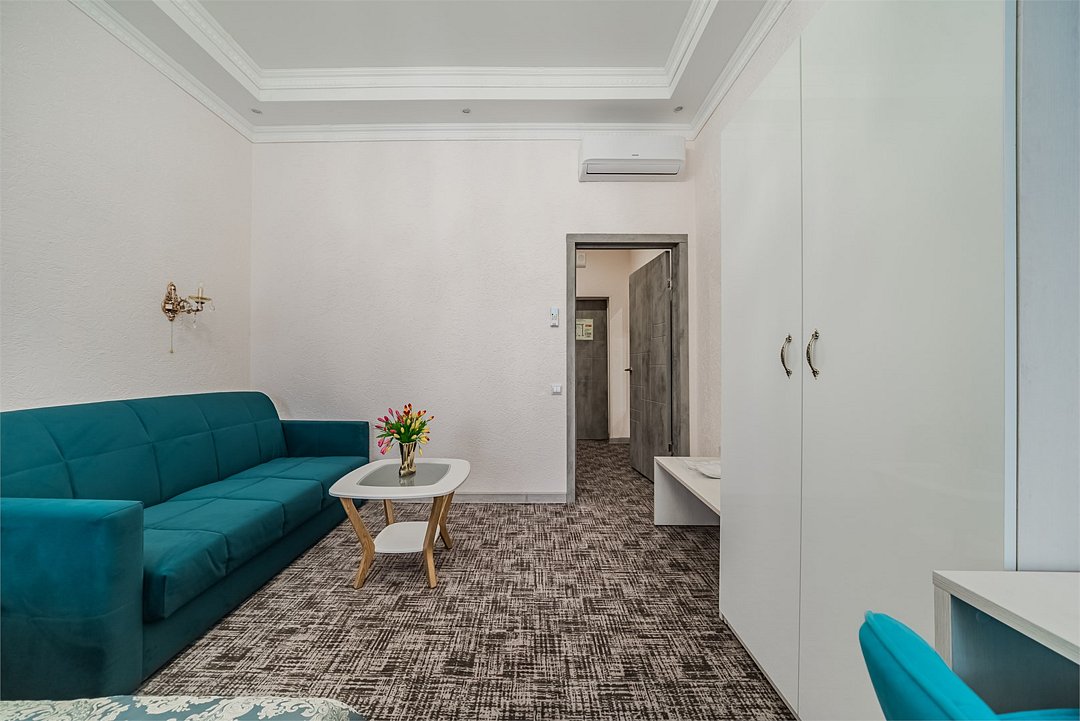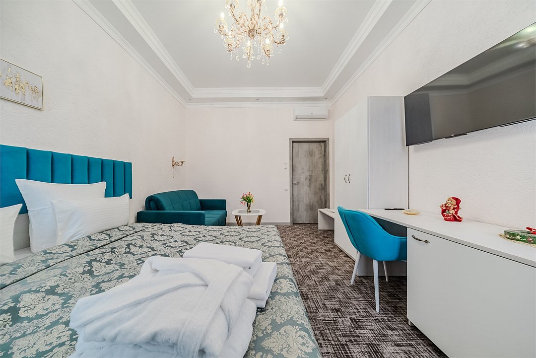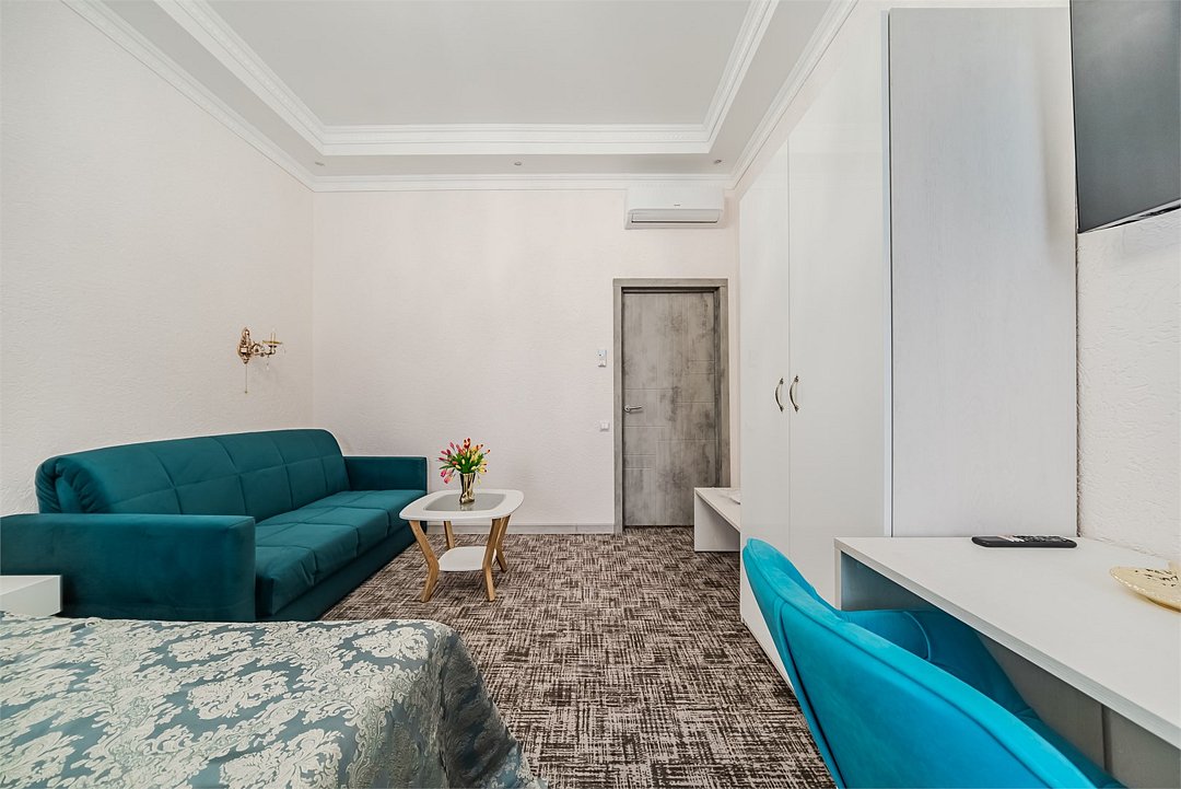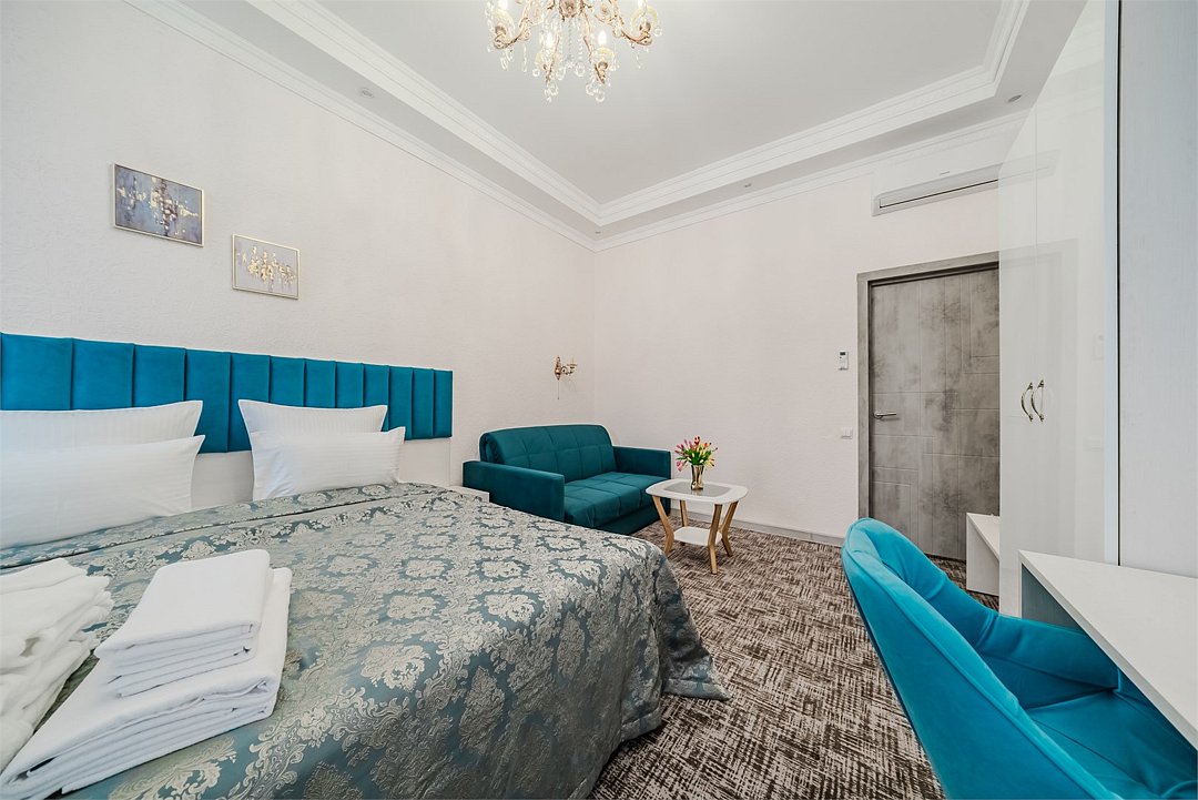 Добро пожаловать в новый отель Виктория в самом сердце Санкт-Петербурга! Номер категории ЛЮКС размещение до 4х гостей . Оснащен всем необходимым для комфортного отдыха : кровать King size c ортопедическим матрасом, уютное белоснежное белье, шторы блэк аут, мини холодильник, кондиционер, гигиенические принадлежности, сейф, шкаф, большое зеркало, дополнительно есть двуспальный раскладной диван, ТВ, Wi-Fi на всей территории отеля. Дополнительно на этаже - кулер, утюг, гладильная доска, стиральная машина, микроволновая печь. Для наших гостей вкусный чай /кофе неограниченно) Доброжелательный персонал всегда готов помочь вам в организации вашего пребывания и сделать вашу поездку незабываемой. Насладитесь атмосферой города и откройте для себя Санкт-Петербург с новым уровнем комфорта! Ваш незабываемый отдых начинается здесь! ✨Услуги и удобства