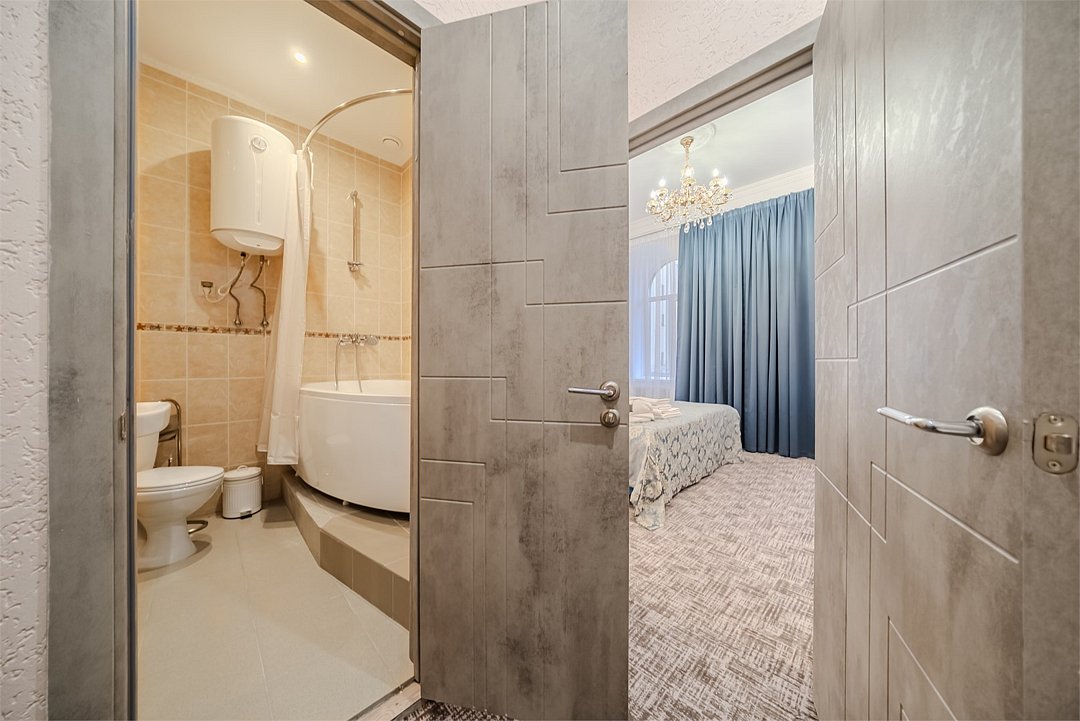 Wi-Fi, кондиционер, светильник, фен, электронные замки, ванная комната, ванна, водонагреватель, халаты, банные полотенца, тапочки, гигиенические средства, кровать «King size», диван, шкаф для одежды, вешалки, журнальный столик, письменный стол, багажная тумба, зеркало, сейф, мягкая мебель, ковровое покрытие, вид на город, кулер на этаже, высокие потолки, стаканы, стул, стол, туалетные средства, сушилка для белья, цифровое тв, раскладной диван, мини-холодильник, фригобар, двуспальный раскладной диван-кровать, вешалки-плечики, шапочка для душа, затемняющая штора, зеркало в полный рост, Android TVВ номере