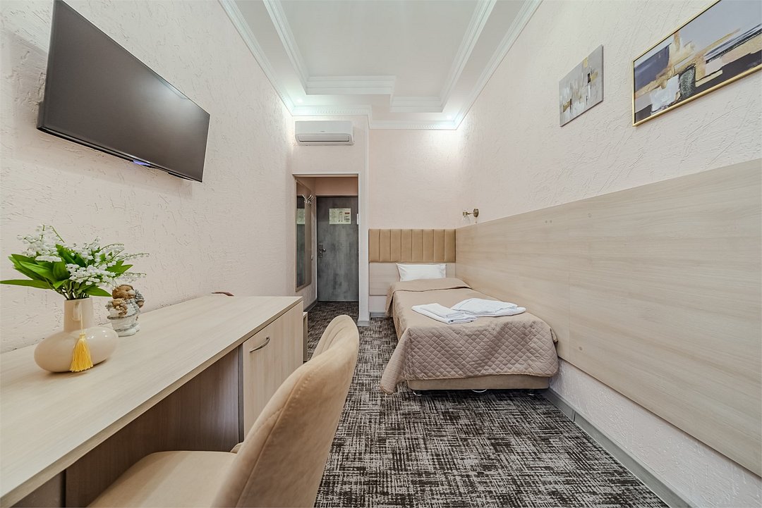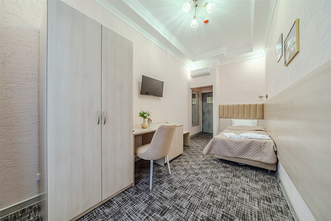 Добро пожаловать в новый отель Виктория в самом сердце Санкт-Петербурга. Одноместный просторный номер со всем необходимым для комфортного проживания: - удобная кровать с ортопедическим матрасом - кондиционер, мини холодильник, фен, большое зеркало, - шкаф, стол, вешалка - ТВ, Wi-Fi На этаже кулер с холодной /горячей водой Дополнительно есть утюг, гладильная доска, микроволновая печь,стиральная машина Для наших гостей вкусный чай/кофе неограниченно) Доброжелательный персонал всегда готов помочь вам в организации вашего пребывания и сделать вашу поездку незабываемой. Насладитесь атмосферой города и откройте для себя Санкт-Петербург с новым уровнем комфорта! Забронируйте свой номер уже сегодня . Ваш незабываемый отдых начинается здесь! ✨Услуги и удобства