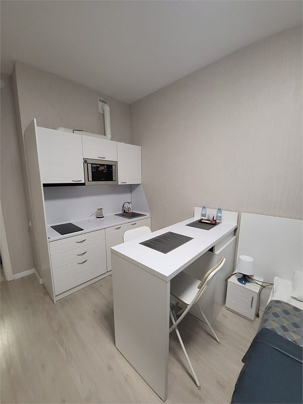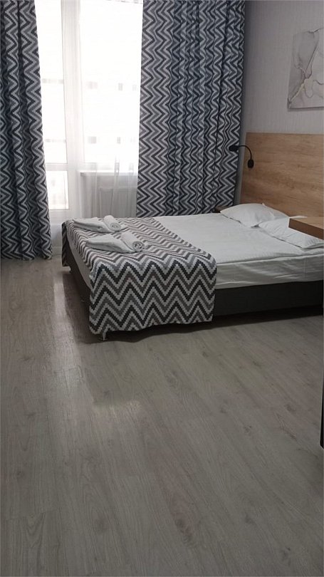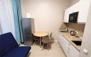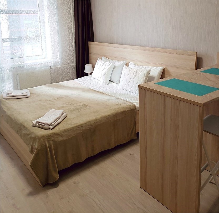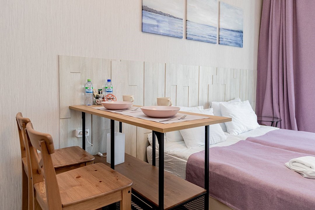 Стильный номер площадью 25 кв.м., оснащенный всем необходимым для плодотворной работы и отдыха. Мы рады предложить одну двуспальную кровать.Каждый номер оснащен мини-кухней с холодильником и варочной поверхностью и набором посуды, рабочей зоной, беспроводным интернетом и ЖК-телевизором. Ванная комната с душевой кабиной, набором необходимых принадлежностей, включая фен.Услуги и удобства