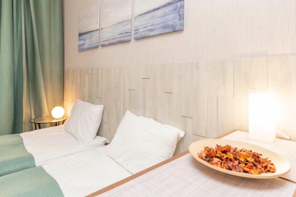 Стильный и удобный номер площадью 25 кв.м. оснащен всем необходимым для плодотворной работы и отдыха. Мы рады предложить две односпальные кровати. В номере: ЖК-телевизор, беспроводной интернет, бутилированная вода, гладильные принадлежности . Ванная комната оснащена душевой кабиной , набором индивидуальных банных принадлежностей, а также феном.Услуги и удобства