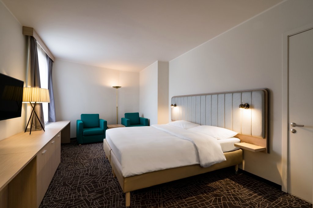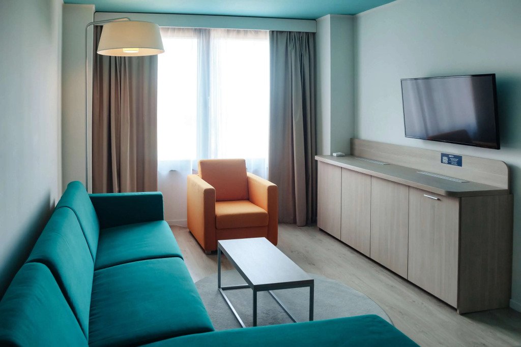 - Российским гражданам при заезде обязательно нужно иметь при себе оригинал одного из следующих документов: действующий паспорт РФ или заграничный паспорт. Стойка регистрации работает 24/7. Для гарантии раннего заезда необходимо внести предоплату в размере 50% от стоимости суток, если ранний заезд будет в промежутке с 08:00 до 15:00. Узнать о наличии свободного номера необходимо либо вечером, предшествующем дате заезда, либо рано утром в дату заезда. Контактные данные указаны в подтверждении бронирования. Заселение граждан Российской Федерации производится только по внутреннему паспорту (заселение по заграничному паспорту или водительскому удостоверению невозможно). Взимается регистрационный сбор с иностранных граждан в размере 300.00 RUB с человека. Для заселения иностранных граждан необходимо будет предоставить паспорт, визу, если она необходима для нахождения на территории Российской Федерации и миграционную карту. На детей необходимо предъявить свидетельство о рождении, записи в паспорте недостаточно, заселение без свидетельства о рождении невозможно согласно законодательству РФ. Если для въезда в страну гостям требуется виза, отель в большинстве случаев предоставит необходимые документы для ее получения. За более подробной информацией обращайтесь в отель, контактная информация указана в подтверждении бронирования. За эти услуги может взиматься дополнительная плата, даже в случае последующей отмены бронирования. Все договоренности осуществляются исключительно между гостем и отелем. Один ребёнок не старше 12-летнего возраста проживает в отеле бесплатно при условии размещения в номере родителя или опекуна без предоставления дополнительной кровати. Завтрак для ребёнка в данном случае оплачивается дополнительно по тарифу, установленному на дату проживания. Для ребёнка в возрасте от 6 до 12 лет предоставляется скидка на завтрак в размере 50%, детям от 13 лет полная стоимость. Дети до 14 лет заселяются только при наличии взрослого сопровождающего с письменным согласием от родителей и свидетельством о рождении. Дети с 14 до 18 лет могут жить в отеле без сопровождающих, но тоже с письменным согласием и со своим паспортом. В согласии от родителей прописывается информация в свободной форме с ксерокопией паспорта родителя (первой страницы и страницы, где вписаны дети) и ксерокопией паспорта сопровождающего. Если ребёнок уже не вписан в паспорт родителя, то кроме копии первой страницы, приложить необходимо ксерокопию свидетельства о рождении ребёнка, чтобы иметь полную информацию о родстве. В номера допускаются только зарегистрированные гости. Допускается проживание с собаками весом до 10 кг и ростом до 25 см за дополнительную плату. Размещение с кошками не допускается. Выбранный тип кровати не гарантируется и определяется в день заезда. Для гостей путешествующих на личном автомобиле в отеле есть бесплатная, неохраняемая парковка. Возможно, приведённый выше список неполон. Суммы платежей и залогов могут быть указаны без учета налога и могут быть изменены. В отеле, согласно его внутренним правилам, может взиматься плата за дополнительные услуги, не представленные на сайте.