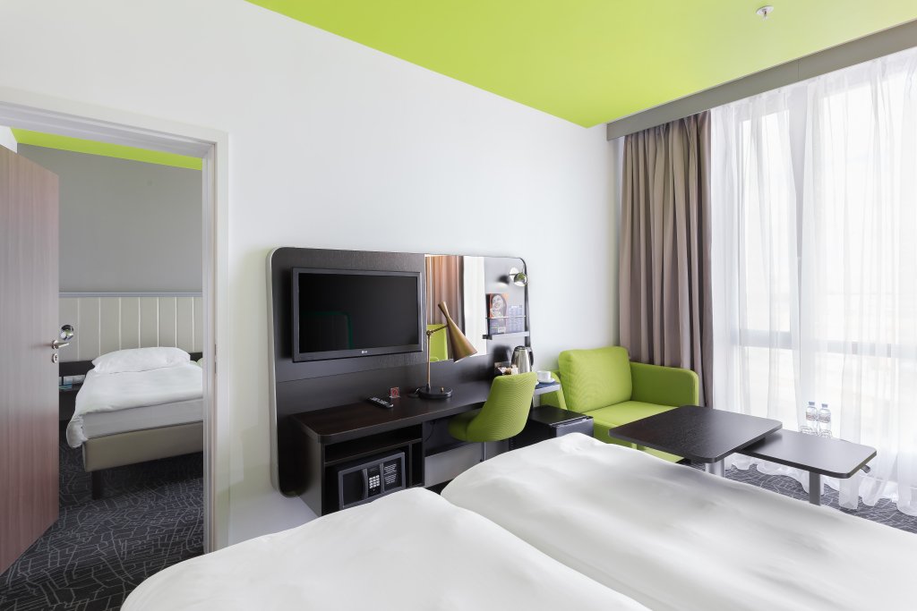 - Российским гражданам при заезде обязательно нужно иметь при себе оригинал одного из следующих документов: действующий паспорт РФ или заграничный паспорт. Стойка регистрации работает 24/7. Заселение по заграничному паспорту или водительскому удостоверению невозможно. Для заселения иностранных граждан необходимо предоставить паспорт, визу — если она необходима для нахождения на территории Российской Федерации, и миграционную карту. Для заселения детей необходимо предъявить свидетельство о рождении. Записи в паспорте недостаточно, заселение без свидетельства о рождении невозможно согласно законодательству РФ. Один ребёнок не старше 12-летнего возраста проживает в отеле бесплатно при условии размещения в номере родителя/опекуна без предоставления дополнительной кровати. Завтрак для ребёнка в данном случае оплачивается дополнительно по тарифу, установленному на дату проживания. Для ребёнка предоставляется скидка на завтрак в размере 50%. Завтрак для третьего гостя оплачивается дополнительно. Детская кроватка для детей до двух лет предоставляется бесплатно. Необходимо заранее уведомить отель о необходимости предоставления детской кроватки, так как их количество ограничено. Выбранный тип кровати не гарантируется и определяется в день заезда. Все стандартные номера идут только с раздельными кроватями, двуспальных кроватей в стандартных номерах нет. В некоторых номерах вид на взлетно-посадочную полосу. Возможность раннего заселения или позднего выезда необходимо заранее согласовывать на стойке регистрации. В случае отсутствия готовых к заселению номеров, гости смогут оставить вещи в камере хранения до момента готовности номера. В номера допускаются только зарегистрированные гости. Возможно, приведённый выше список неполон. Суммы платежей и залогов могут быть указаны без учета налога и могут быть изменены. В связи с тем, что отель расположен на территории Аэропорта Пулково, гостям необходимо учитывать некоторые особенности при планировании прибытия в отель. — Если гости выбрали такси средством передвижения: гостям необходимо подъехать к линии прибытия и главный вход в отель будет расположен в 30 метрах. — Если гости путешествуют на личном автомобиле: отель не предоставляет парковочные места. Платные парковки предоставляет Аэропорт. Гости могут ознакомиться с планом парковок перейдя по ссылке: https://pulkovoairport.ru/transport/car/ Ближайшая к отелю парковка — P1. — Если гости путешествуют с большим количеством багажа: необходимо связаться с отелем за час до прибытия в отель для организации подъезда к главному входу отеля. В отеле, согласно его внутренним правилам, может взиматься плата за дополнительные услуги, не представленные на сайте.