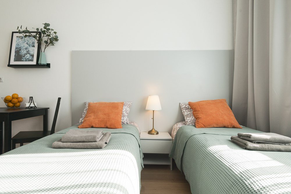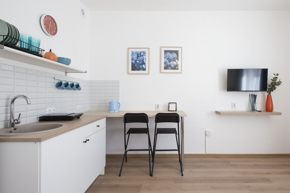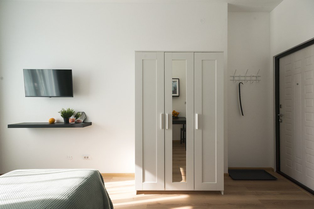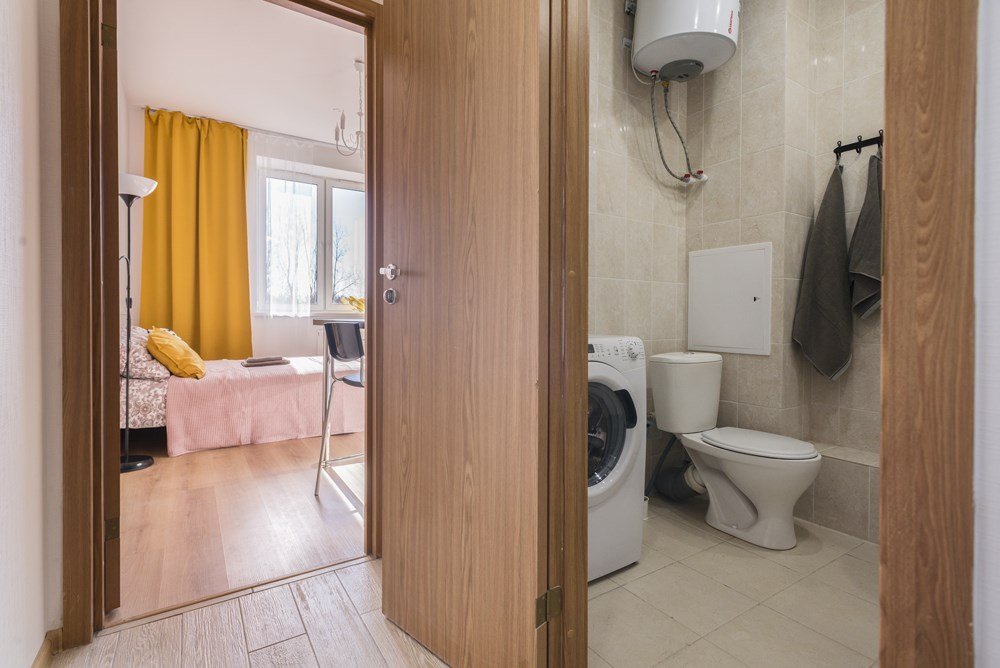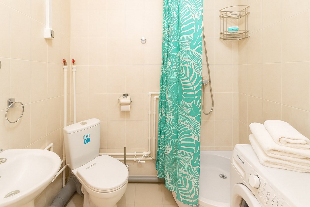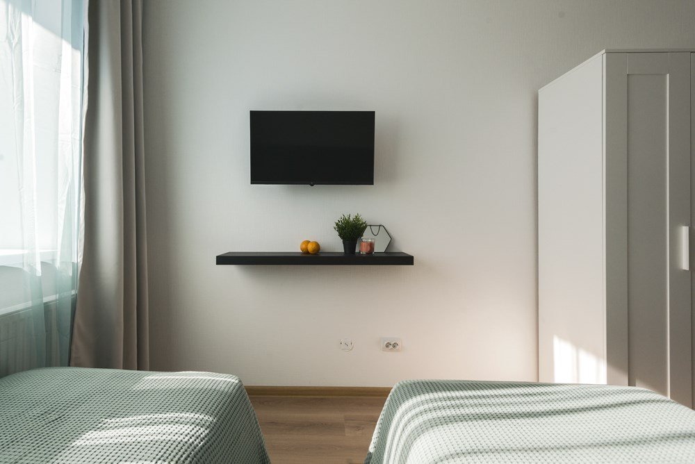 телевизор, Wi-Fi, интернет, холодильник, светильник, фен, система безопасности, электронные замки, плита для приготовления пищи, микроволновая печь, утюг, ванная комната, ванна или душевая кабина, санузел, водонагреватель, банные принадлежности, банные полотенца, гигиенические средства, две односпальные кровати, гладильная доска, тумбы, стулья, шкаф для одежды, вешалки, обеденный стол, зеркало, комод, мебельный гарнитур, набор посуды, стиральная машина, чайник, унитаз, раковина, косметическое зеркало, отопление, душ, вид во двор, ламинат, кухонная посуда, стаканы, кухонная утварь, столовые приборы, стиральная машина и сушилка, стул, стол, тумба, туалетные средства, сушилка для белья, цифровое тв, телевизор с плоским экраном, кухонный уголок, телевизор со Smart TVВ студии