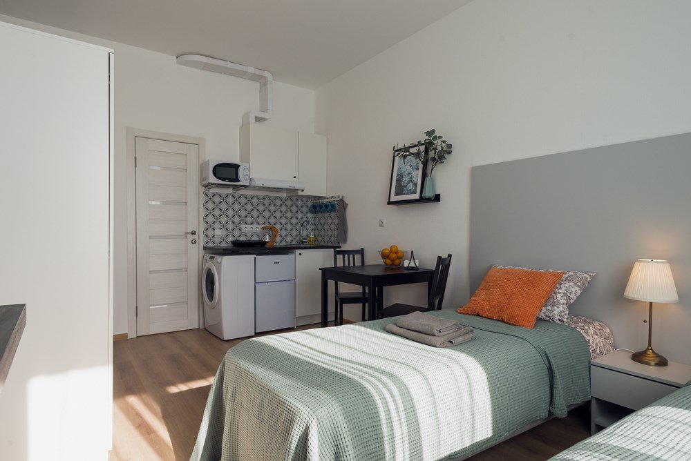 Студии в новом ЖК "Живи! В Курортном" - единственном новом жилом комплексе в поселке Песочный в Курортном районе Санкт-Петербурга. Район с благоприятной экологией и удобной инфраструктурой! В пешей доступности расположены: ФГБУ "НМИЦ” онкологии им. Н.Н. Петрова" Минздрава России в посёлке Песочный. Совсем рядом, на Ленинградской улице, открыты магазины, отделения банков, а также медицинские и спортивные центры. Уникальное сочетание комфорта отеля и уюта квартиры. Удобно. Современно. Безопасно. Очень светло. Гарантированная чистота помещения без неприятных запахов (курение строго запрещено), генеральная уборка перед каждым заселением. Есть все - горячая вода, вся посуда и техника, WiFi. Комплименты гостям: чай, сахар, печеньки и доброжелательные хозяева. Студии профессионально укомплектованы: удобные кровати, посуда, плита, СВЧ, стиральная машина, белье, полотенца, WiFi, утюг, фен, ТВ, гладильная доска, сушилка. Бесплатная парковка для авто (у дома всегда есть места). Парадные расположены на уровне земли для еще большего удобства мам с колясками, велосипедистов и маломобильных жителей. Экология в этом районе благоприятная. Здесь почти нет промышленных сооружений, зато произрастает лесной массив. В округе много водоёмов, крупнейшие из которых – Глухое озеро и Сестрорецкий разлив. Рядом с ними организованы пляжи. Менее чем в 12 км от ЖК «Живи! В Курортном» находится Финский залив. Близко находятся популярные курорты Репино и Зеленогорска.Услуги и удобства
