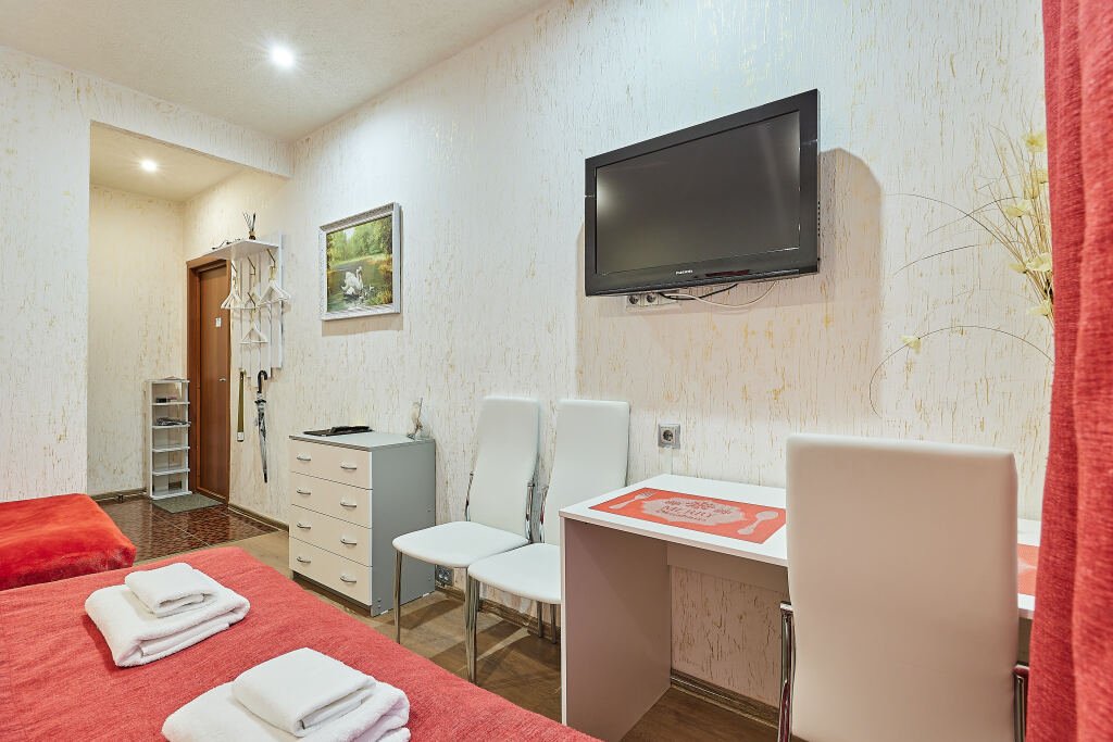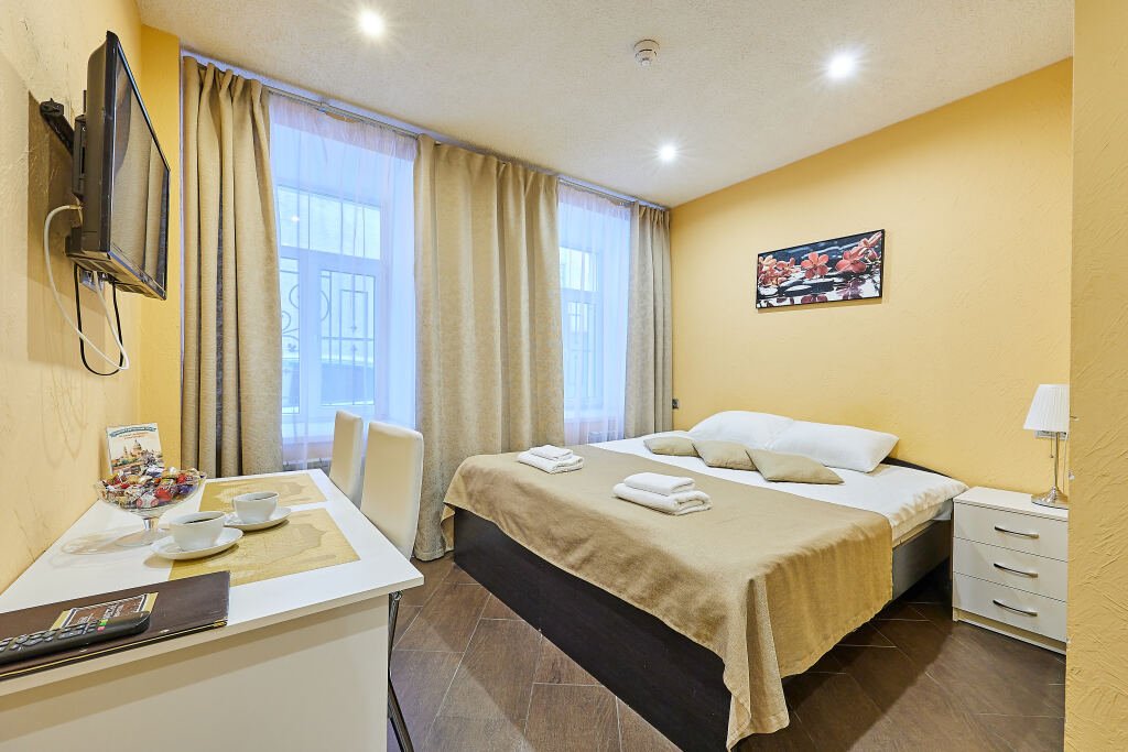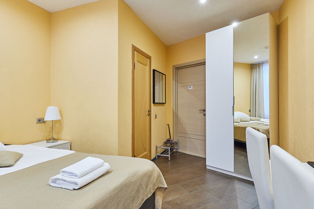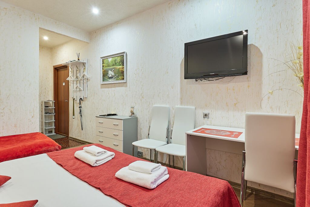 Номер уютно обставлен и оснащён необходимым, чтобы отдохнуть после долгого и насыщенного дня. Имеются телевизор. Перечисленные услуги есть не во всех номерах.